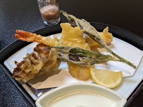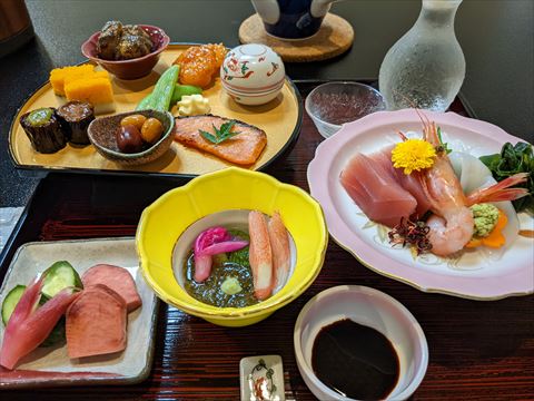 ぎふ割でお宿山久(1) 2022/9/2(4年前) 岐阜, 旅, 東海 岐阜の宿泊割 ぎふ割で飛騨高山のお宿山久に宿泊しました. 部屋です. 窓から寺が見える,静かな環境です. この旅館は雰囲気がとても良いと評判です. 入口. ロビー. 館内は大正浪漫漂う空間となっています. 2階の廊下. 人間国宝が作った陶芸. ガラスの骨とう品. 浴場. 内風呂には木製の車輪が飾られていました. 露天は釜風呂.ゆっくり浸かるのにちょうどよい大きさでした. ここの旅館のもうひとつの名物”かかさま料理”. 地元の食材を使った前菜とあしらい,それとお造り. あとぎふ割のポイントで地酒を注文しました. 飛騨牛.あとパイ包みのスープ. 飛騨牛に火が通った頃にご飯. 天ぷら. デザート. 食事は5時半から8時の好きな時間に食事処に行けばよく,自分のペースで過ごせるのでゆっくりできました. 雰囲気も風呂も食事も接客もとてもよく,評判が良いのも納得の旅館でした.