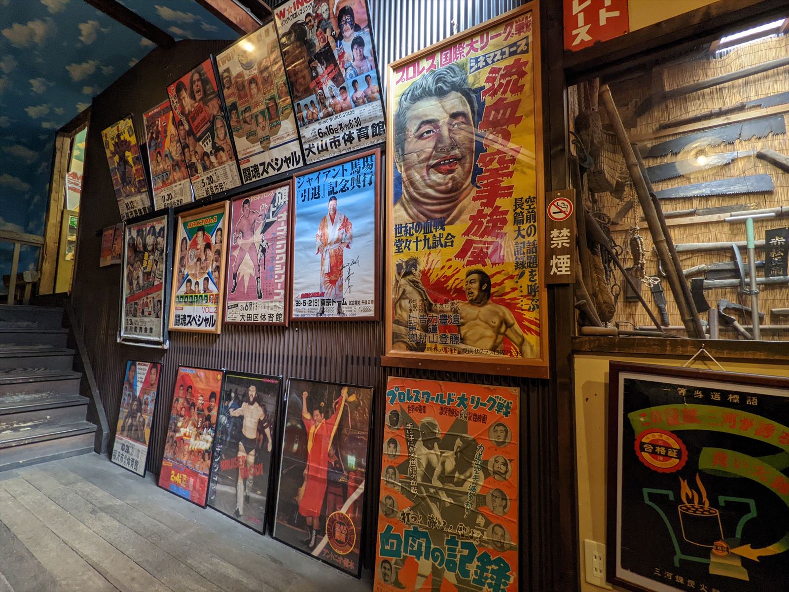 2階への階段の途中にはポスターが.