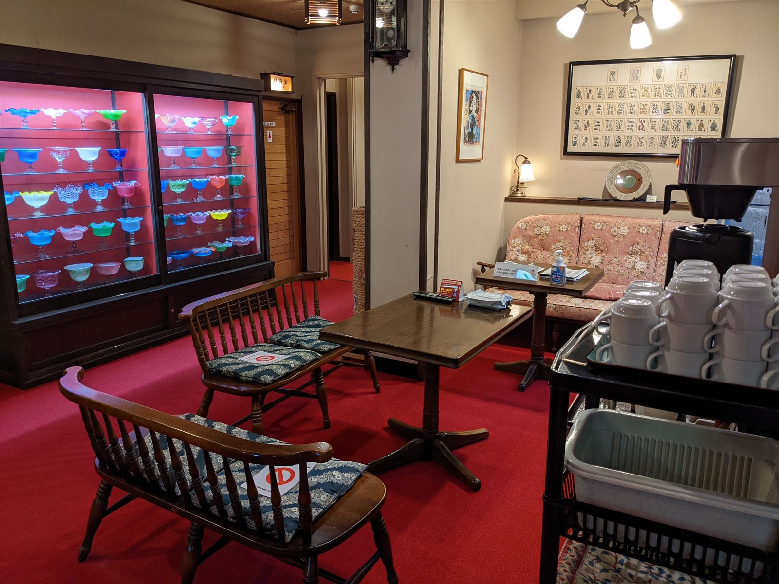 ぎふ割でお宿山久(2) 2022/9/3(4年前) 岐阜, 東海 朝食. もちろんほうば味噌があります. 朝からチェックアウトの時間まではコーヒーのセルフサービスがあります. 前日は通らなかった1階の廊下. こちらも様々なアンティークがずらっと飾られていました. 階段も雰囲気あります.カンペキです.