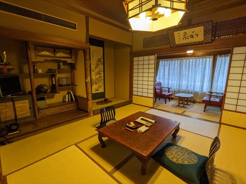 泊まる部屋は国登録有形文化財「斉月楼」です.全国旅行支援がはじまったせいか予約しようとしてもずっと満室でしたが,幸運にもここが1室空いてとれました.
