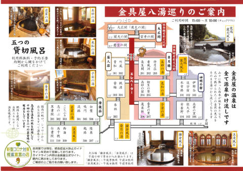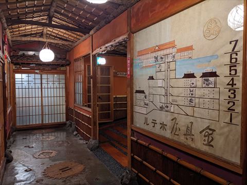 金具屋の案内図です.泊まる部屋と食事の場所と金具屋巡りツアーの集合場所が書かれています.