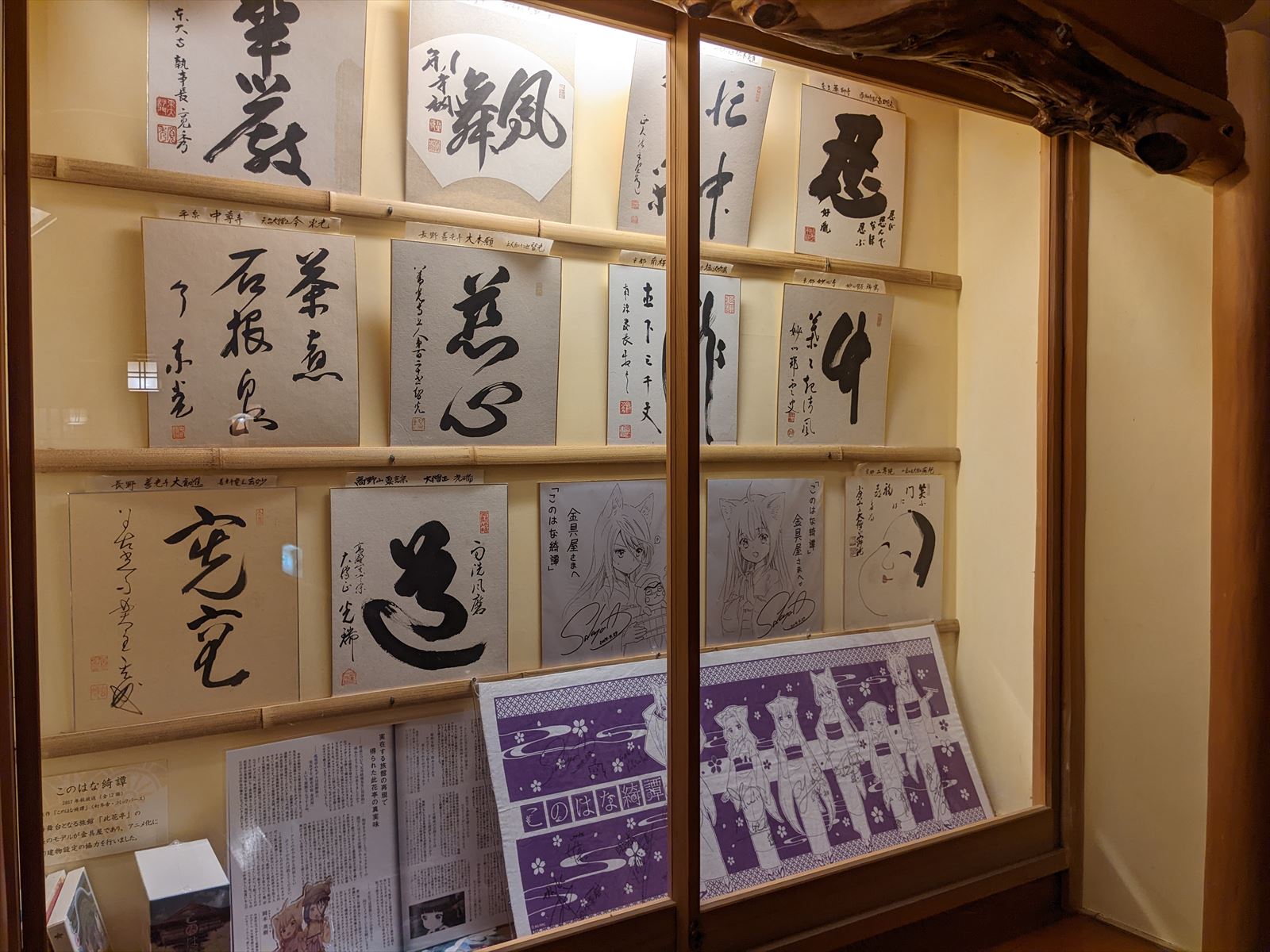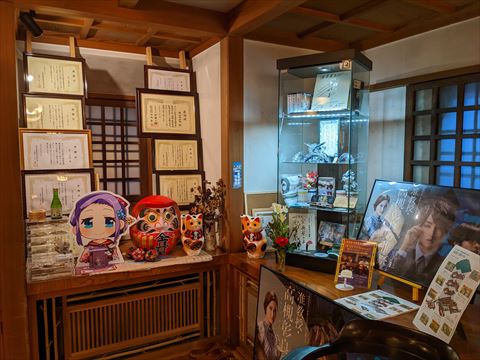 下の記事や手ぬぐいはマンガ「このはな奇譚」関係.千と千尋と違ってこちらは金具屋をモデルにしたとアナウンスしています.