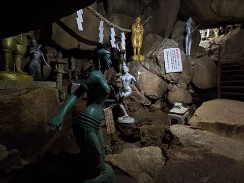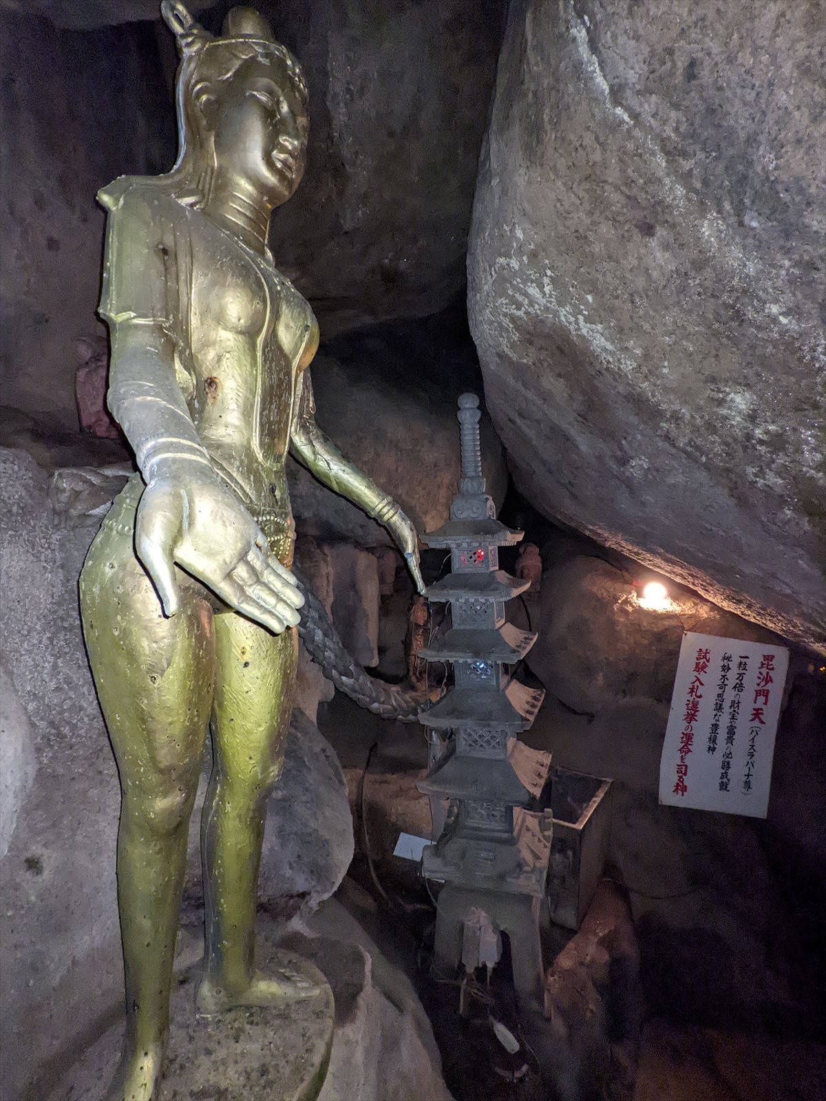 観音像の左奥には,巨大な岩石が屋根になっている祠,