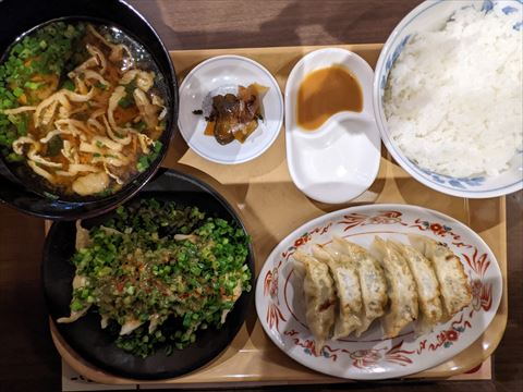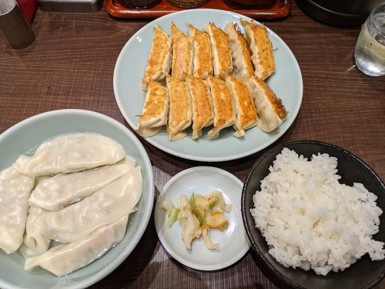 シンプルに焼き餃子と水餃子とライスを注文.