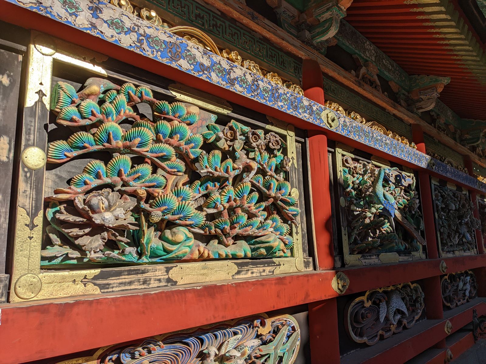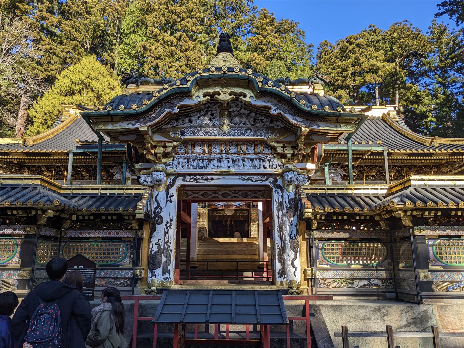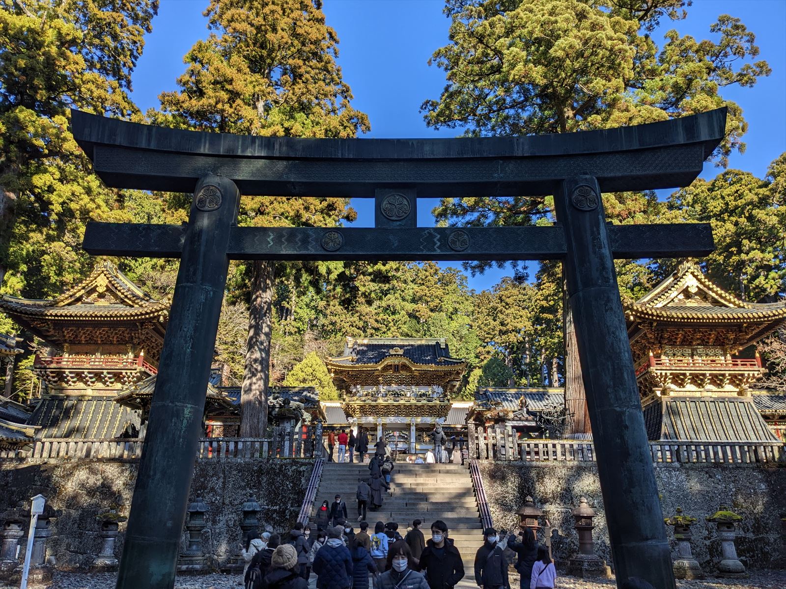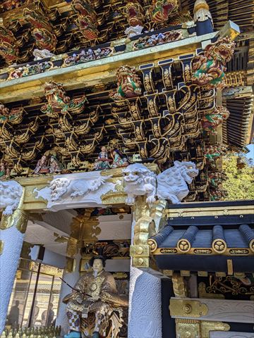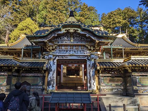 日光東照宮 2022/12/10(3年前) 旅, 栃木, 関東 そして日光東照宮へ. いきなり葵のご紋とはさすがです. 陽明門. ものすごい作り込みです. 陽明門の横,廻廊の彫刻. 陽明門の琴高仙人 神厩舎の猿.「見ざる、言わざる、聞かざる」の三猿で有名ですが,猿の彫刻は他にもあって全部で猿の一生を表しているとか. 唐門. こちらも有名な祈祷殿の眠り猫. そして奥宮の神君家康公の墓所,宝塔. 当時の徳川の権威を物語る豪華絢爛な場所でした.
