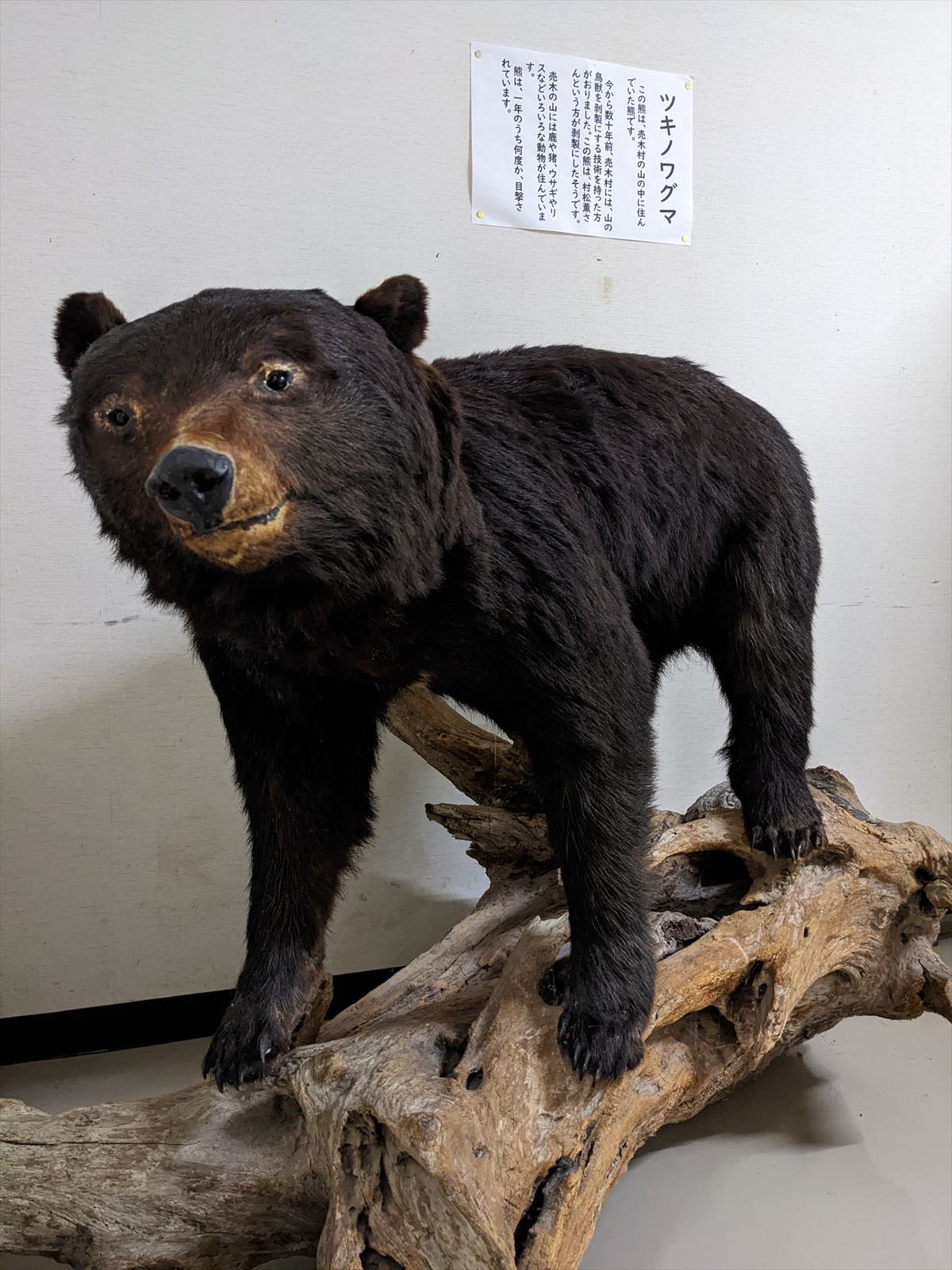 廊下にあったツキノワグマのはく製.この辺では年に数回目撃情報があるそうです.