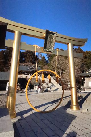 本殿から幸運の鳥居を撮ろうとしていたら電池が切れました.