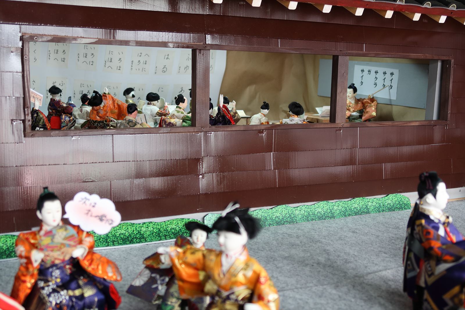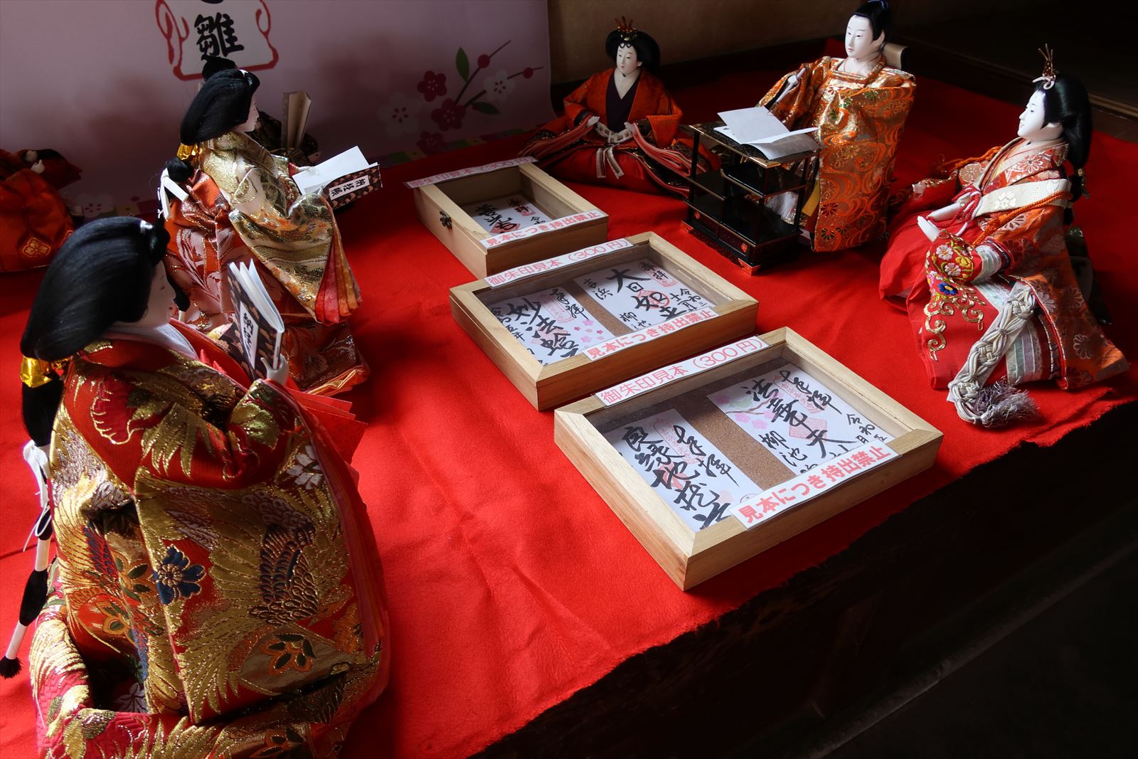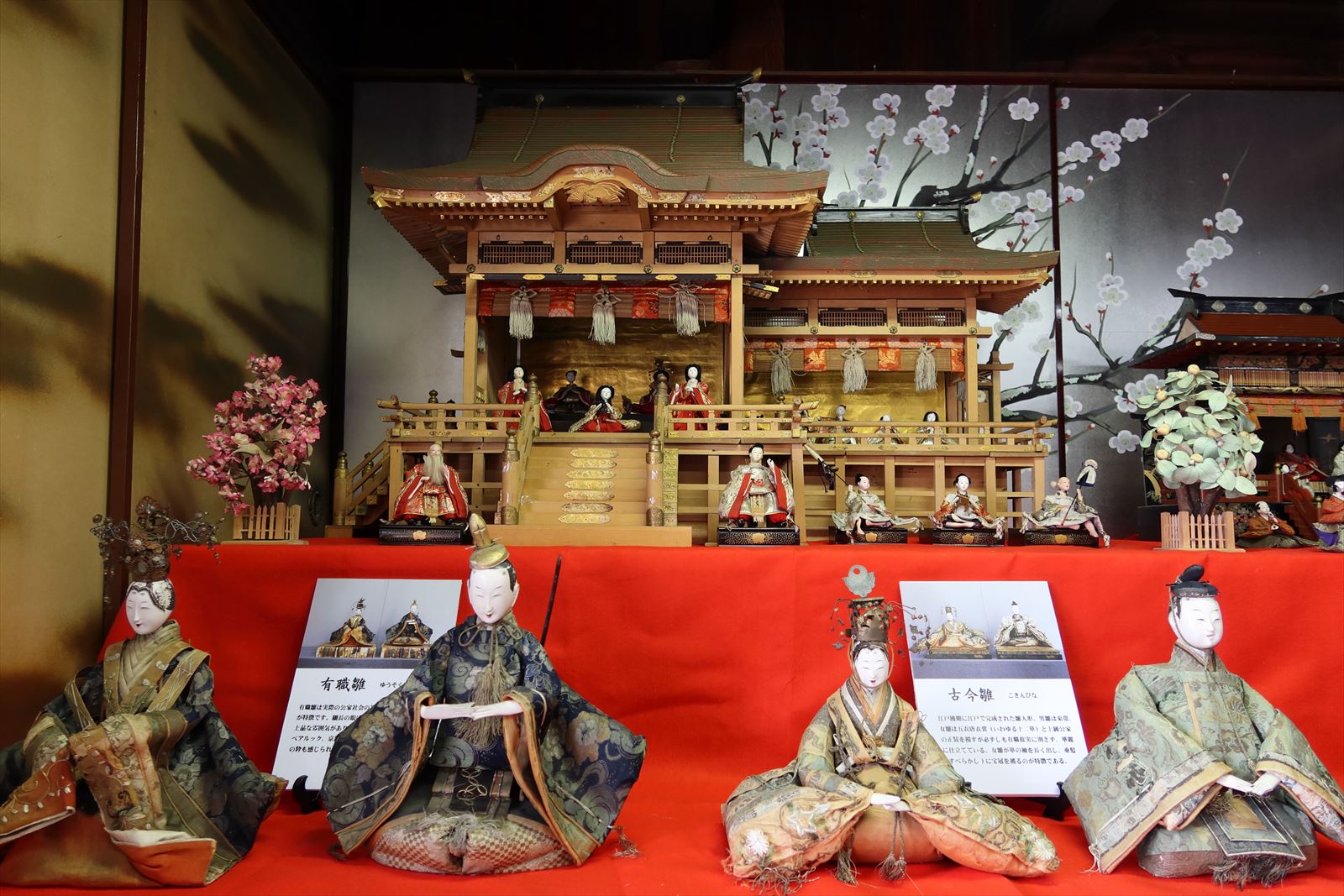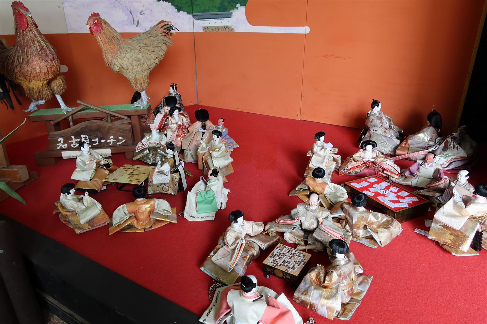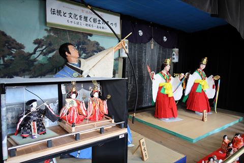 スタート地点の人形小路一番館には吉浜人形とそのポーズを模した福よせ雛.