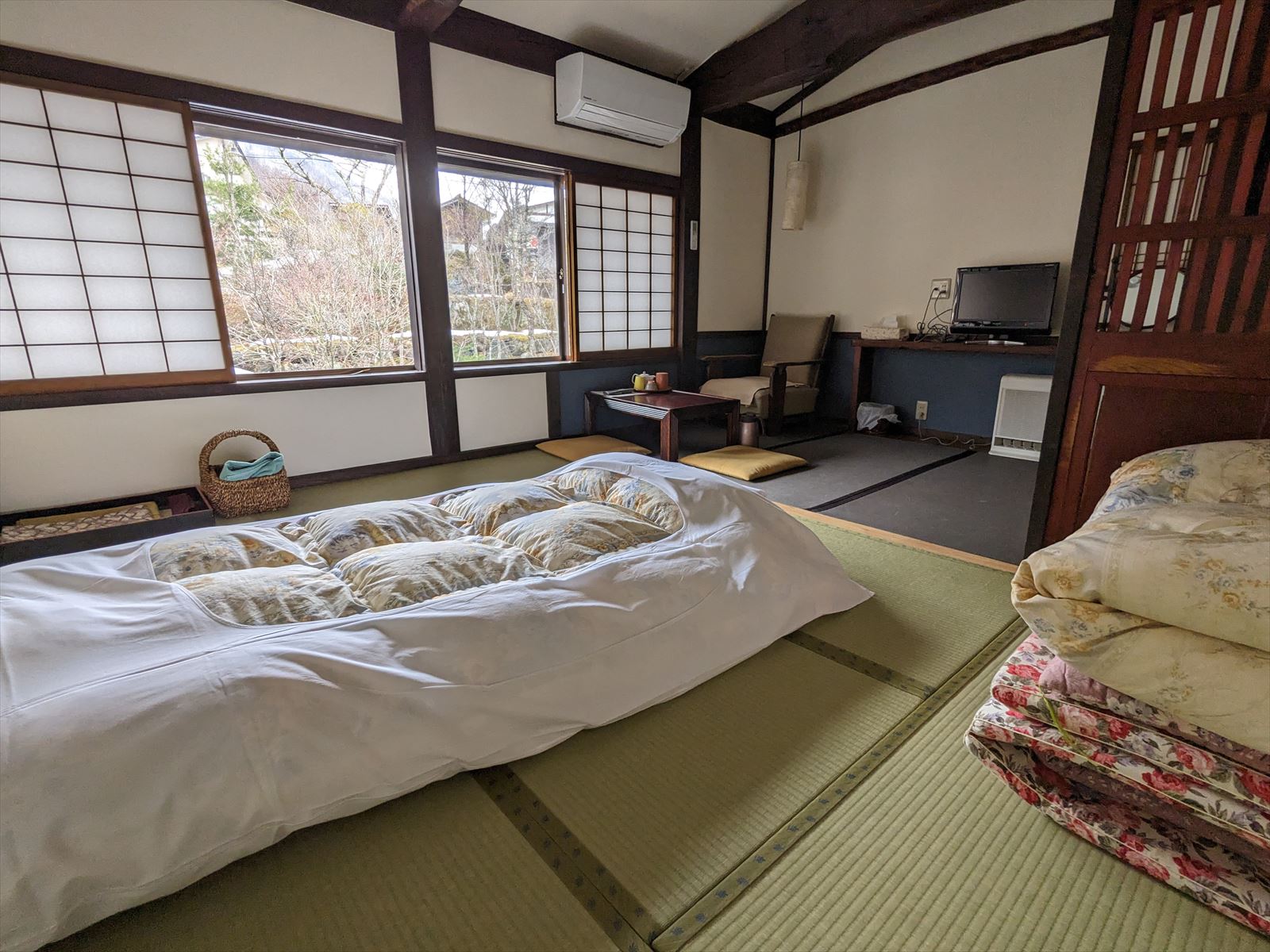 麓庵 民宿たきざわ 2023/3/17(3年前) 岐阜, 旅, 東海 今回泊まったのは奥飛騨温泉の新穂高エリアにある麓庵 民宿たきざわです. 古民家を改装した宿です. 立派な玄関. 2回の廊下.シックながらモダンな雰囲気. 部屋.こちらも古風で和風な感じながら物は新しくきれいです. 全室床暖房完備とのことで,黒い方の畳があったかかったです. ちなみに今回は安くするため素泊まりな上にアメニティもないプランでしたが部屋には浴衣とタオルが置いてありました. 持ってきていますしとりあえず使わないでおきました.