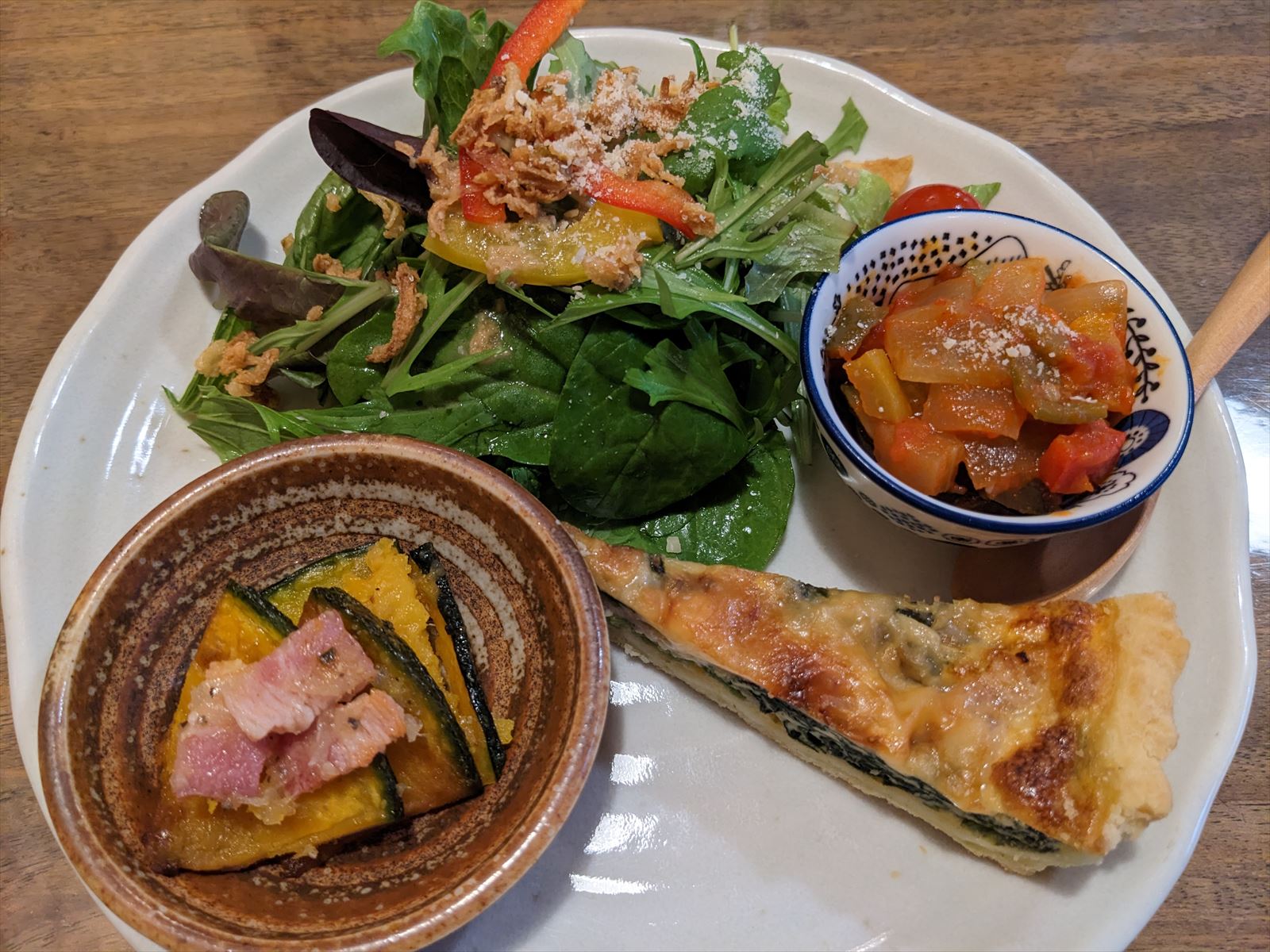 ピザ@石窯キッチンまきび 2023/4/2(3年前) 京都, 近畿, 食べ物 昼食はピザということで探したところ大原野には多くのイタリアンがあるようで,その中で今回行ったのが石窯キッチンまきびです. 小さなお店で日曜はワンオペとのこと. コースを注文. まずは前菜. 薄め生地のパリパリビザ. 厚め生地のもっちりピザ. そしてドルチェ. 満腹です.