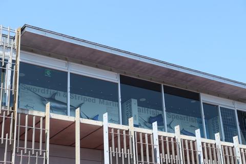 上の階に魚のオブジェが見えました.かじきミュージアムがあるようです.