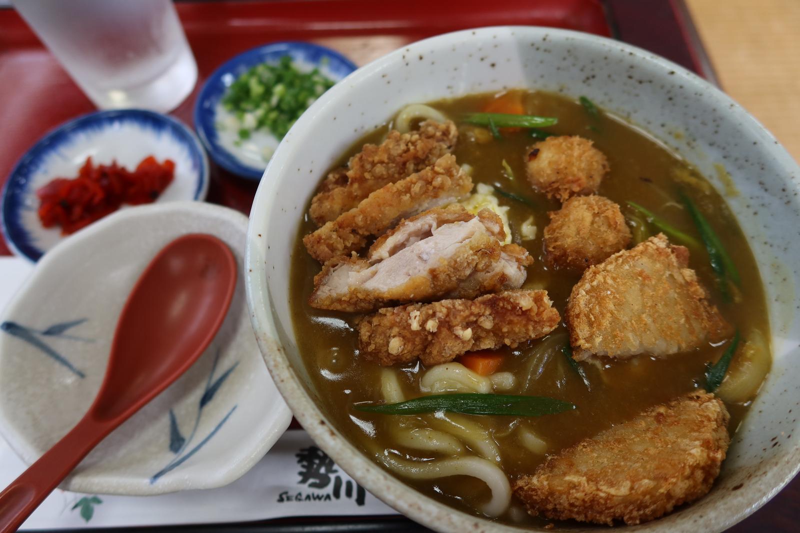 豊橋カレーうどんが来ました.竜田揚げをトッピングしています.