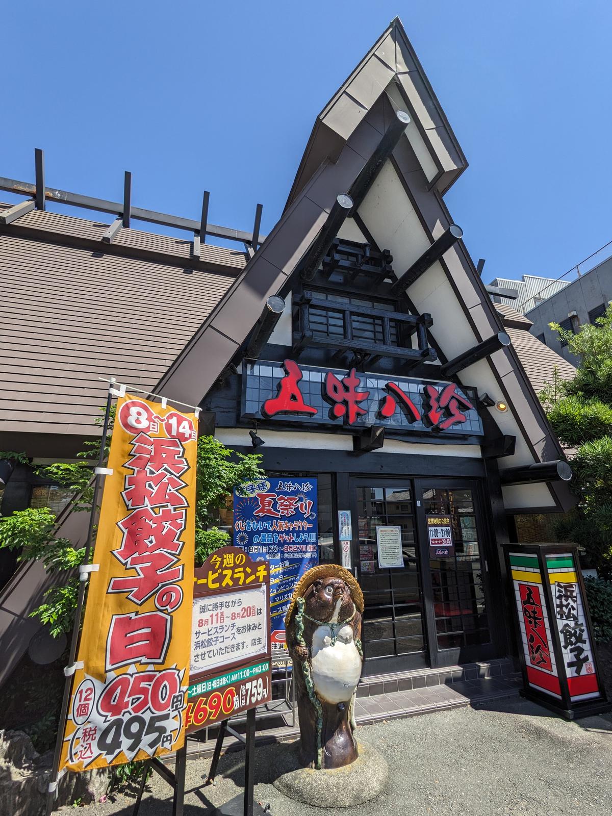 デジタルスタンプラリーで五味八珍 2023/8/11(3年前) 旅, 東海, 静岡, 食べ物 またまた身内でデジタルスタンプラリーに参加しました. 今回は静岡県の浜松市・掛川市・静岡市の辺りです. 西から東に攻めていくとして,まずは浜松駅のメイワンビルにある五味八珍に行きました. 昼時に着くとさすが駅ビル,20組くらいの待ちがありました. 店の入り口にデジタルスタンプがあったので押印し,申し訳ないけど食事は別のチェーン店で食べることにしました. 浜松駅を去る前に駅前の家康くんを撮影. 御覧の通りいい天気です.暑いです. ということで食事で訪れたのは五味八珍 豊田町店 30分くらいたち13時を過ぎたとはいえ,打って変わって程よい客入り状態. 注文したのは定番の浜松餃子, オーソドックスな醤油ラーメン, 夏と言えば冷やし中華, そしてタルト3種!