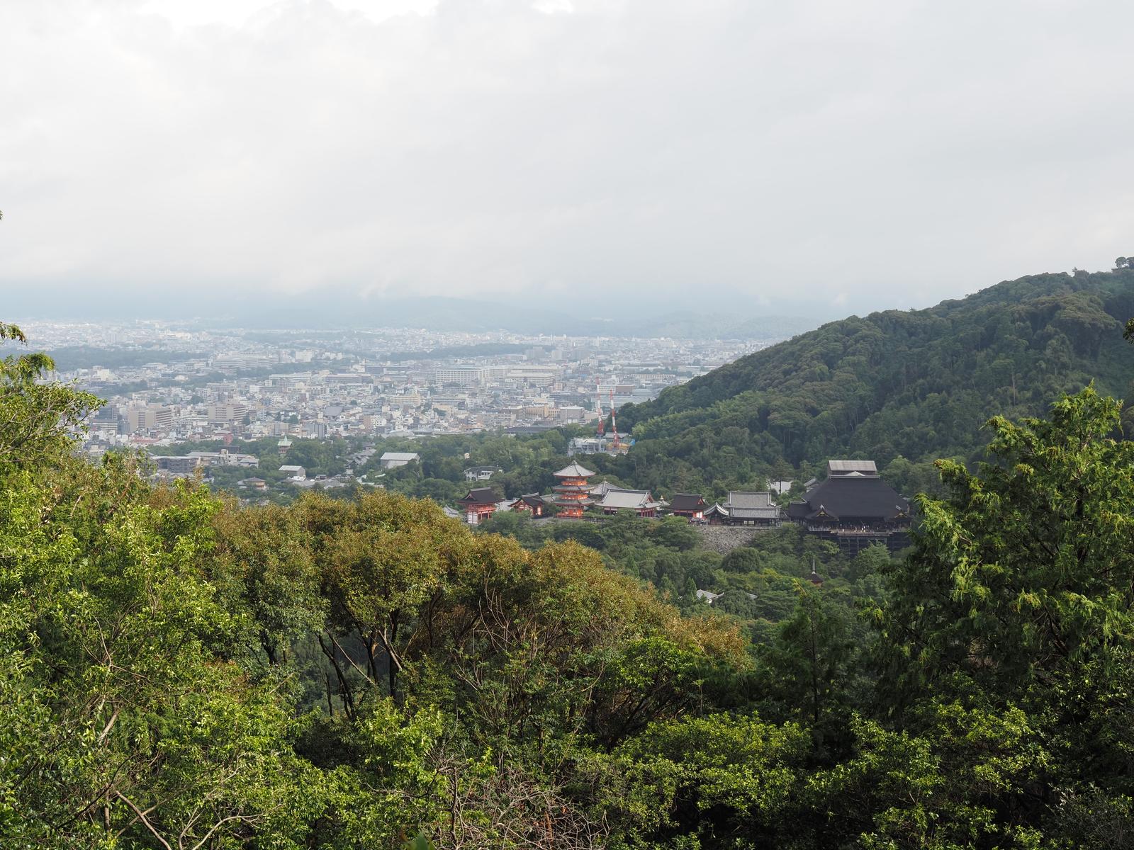 北の清水寺を望むことができます.向こうは朝から多くの人がいるようです.