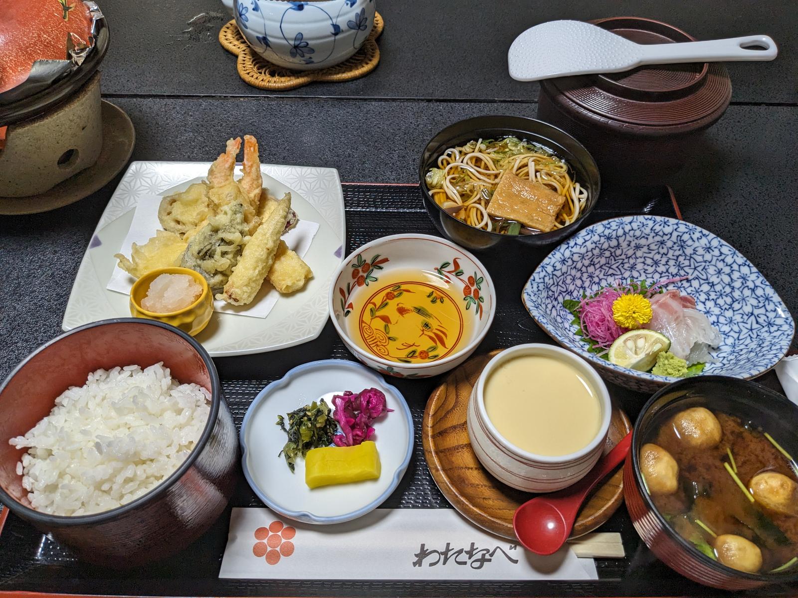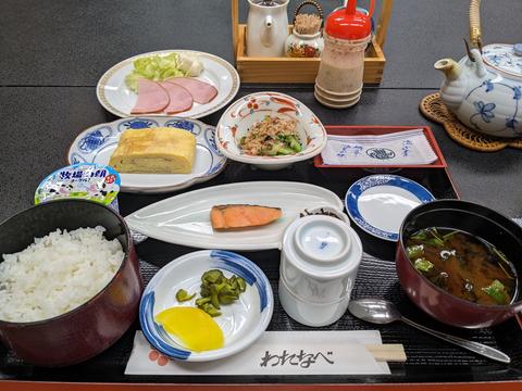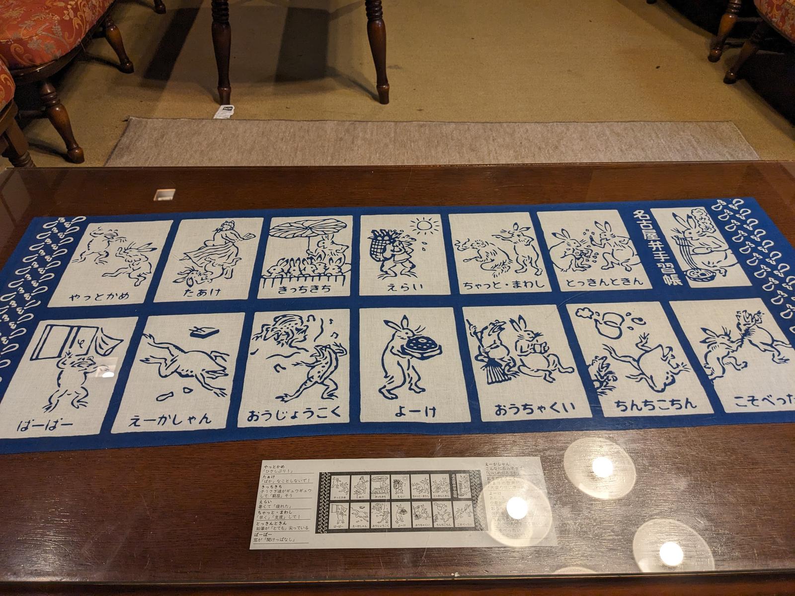 料理旅館わたなべ 2023/9/1(3年前) 愛知, 旅, 東海 先日の愛知巡りでじゃらんポイントがたまっていたので,名古屋にある料理旅館わたなべに泊まりました. 名古屋にありながら駐車場無料のめずらしい宿です. 館内には重厚な日本画. フロントの机にあった鳥獣戯画の挿絵の名古屋弁解説. 部屋はこじんまり. 窓から中庭が見えました. そして期待の夕食. これぞ料理旅館!という感じはしませんが普通にはおいしかったです. 陶板焼きは豚肉の香葉味噌. 朝食は「こういうのでいいんだよ」的な焼き鮭や卵焼きがメイン.