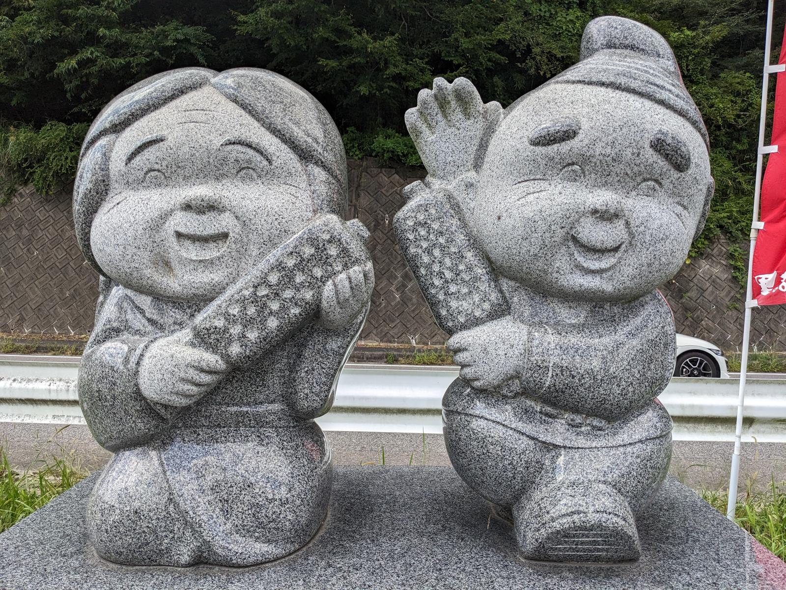 下山の五平餅愛 2023/9/3(3年前) 愛知, 日記, 東海 道の駅やドライブインっぽいがそういう看板を掲げていない場所こと下山の里. デカい五平餅があります. 駐車場には五平餅を持って微笑む老夫婦の像. 少し場所を移動するとそこにも五平餅の店が.