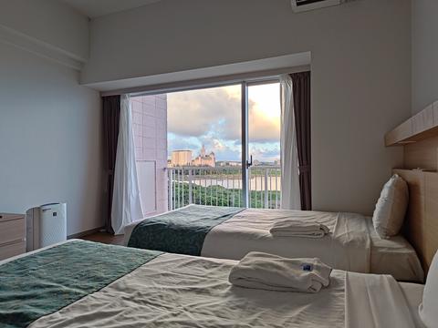 残念ながらプール付きの部屋には泊まれませんでしたが,ビーチや他のリゾートホテルが見えます.
