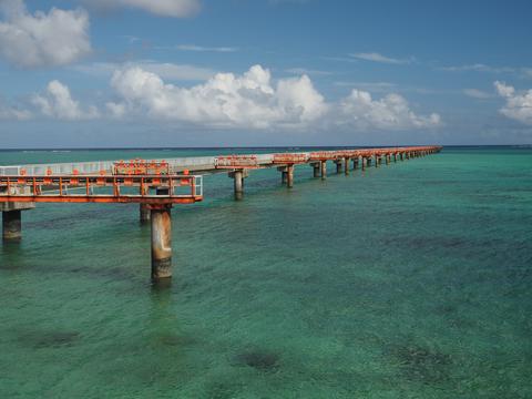 北の方へ歩いていくと下地島空港の誘導灯が見えてきました.