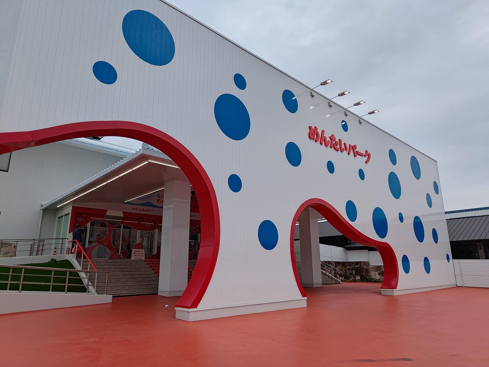 元の建物をいじらずに明太子型の入口を建てた感じですかね.