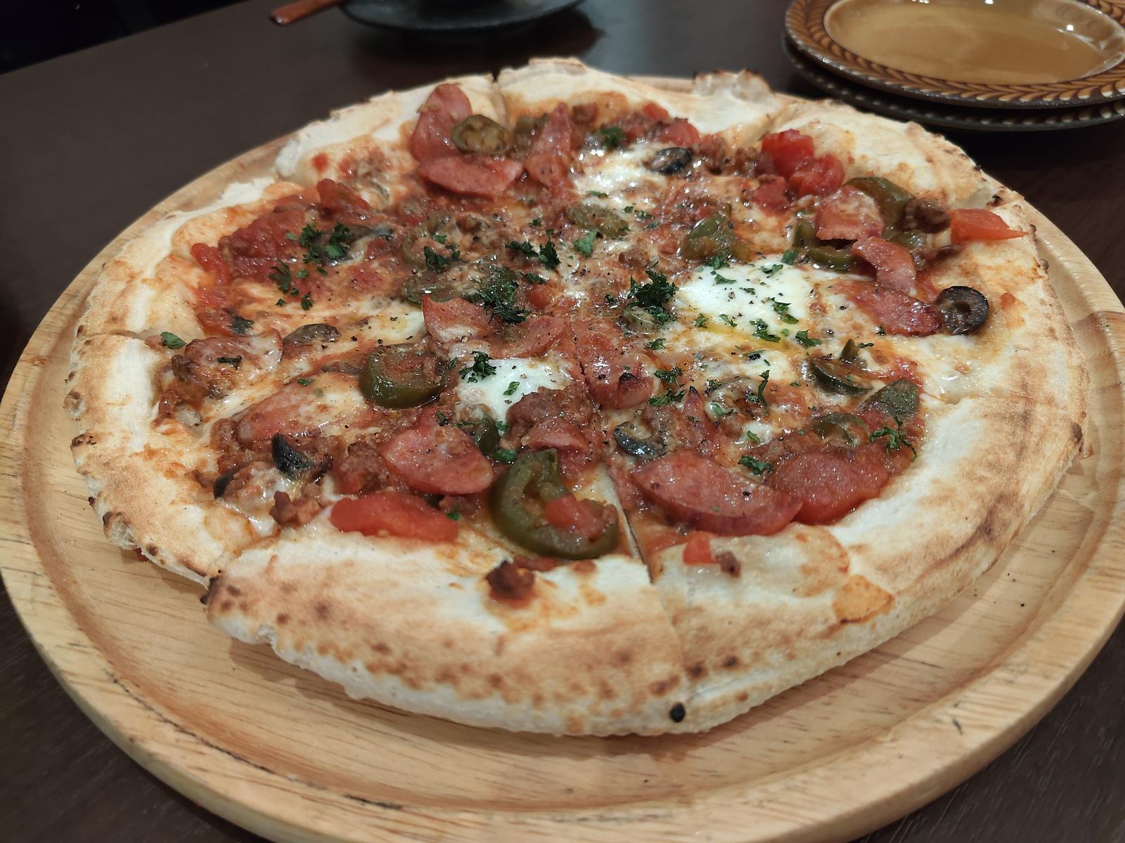 創作イタリアンArata 2023/10/14(2年前) 京都, 近畿, 食べ物 ピザが食べたいということでこの日の夕食は山崎にある創作イタリアンArataへ行きました. お通しの生ハム. サラダはオリジナルソースのバーニャカウダー. ディアボロ風ピザ. 生地はちょうどよい厚さで食べ出がありピザを食べたという満足感がありました. あと和風パスタも.