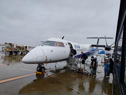 今回の飛行機は小型なプロペラ機.そのせいか機内Wi-Fiがありませんでした orz