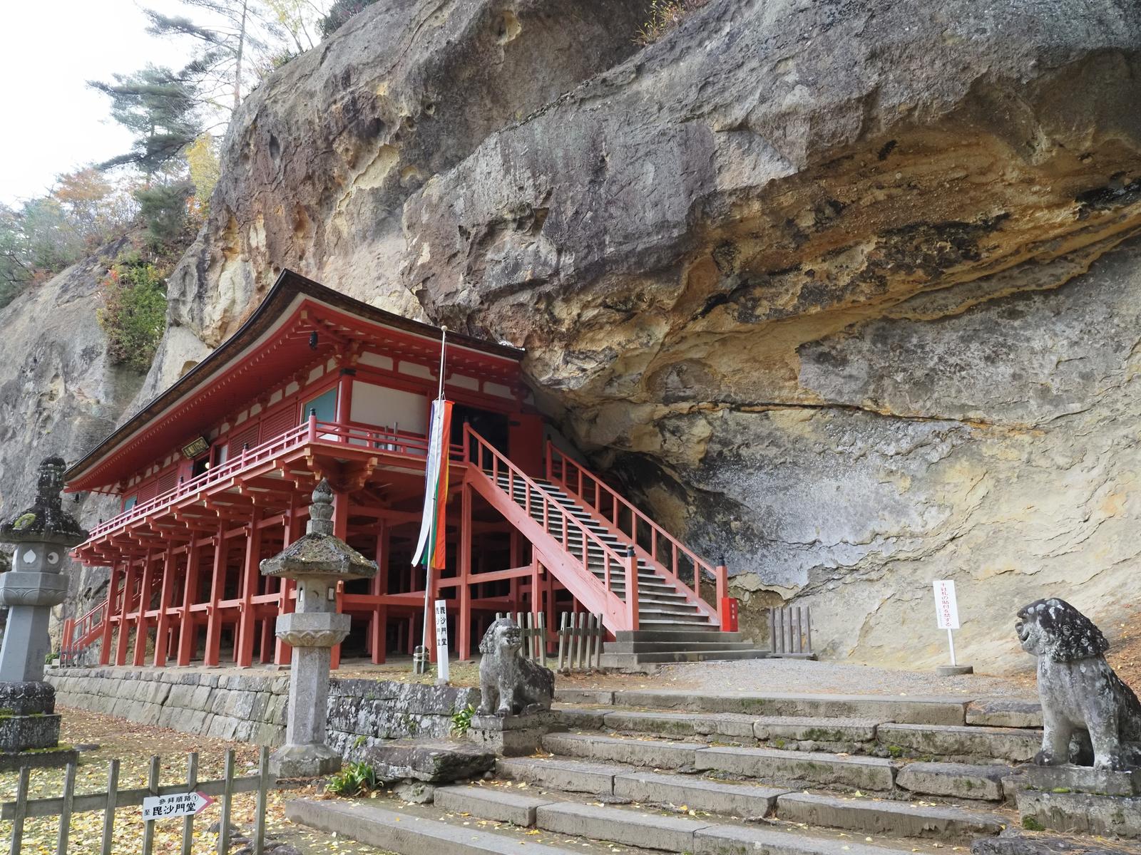 達谷窟毘沙門堂 2023/11/11(2年前) 岩手, 旅, 東北 平泉は来たことがあるので目の前を通過しましたが,そこからしばらく行ったところに何やら興味をひくものがあったので立ち寄りました. 達谷窟毘沙門堂だそうで,なんでも坂上田村麻呂公が岩窟に毘沙門天を祀ったのがの創建というすごい所でした. 岩面大仏とあったので写真はとりましたがよくわかりませんでした. Webの写真を見てわかりました. お堂と池. 落葉したいちょうの葉がきれいです.