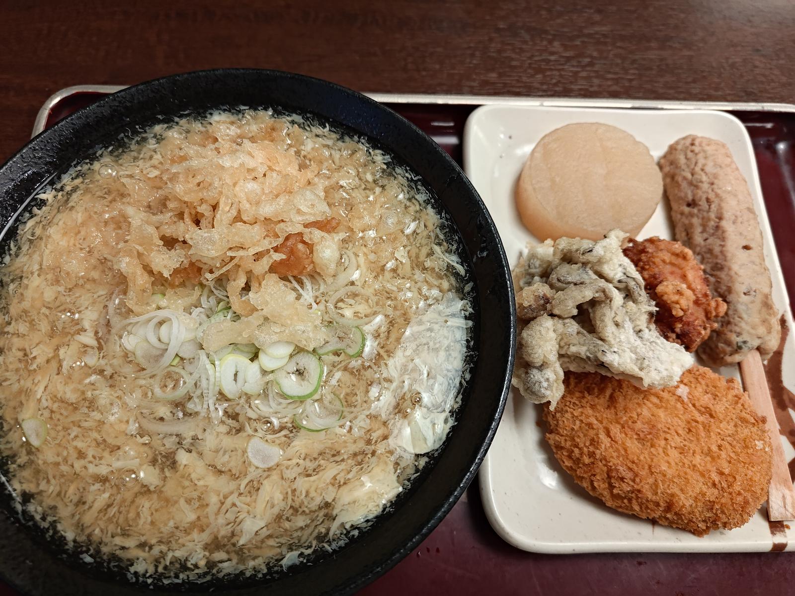 卵とじそば@そば太鼓亭 2023/11/25(2年前) 日記, 近畿, 食べ物 京都独特の食べ物,卵あんかけうどんが食べたくて調べたところ,近所でヒットしたのがこのそば太鼓亭だったので行ってみました. 頼んだのは卵とじそば・・・そば? どうやら卵とじだけ目に入ってそばというのは見落としていたようです.店名もそばだというに. おでんやら揚げたての唐揚げやらもつけられてこれはこれでよい店でしたが京都の卵とじうどんは持ち越しです.