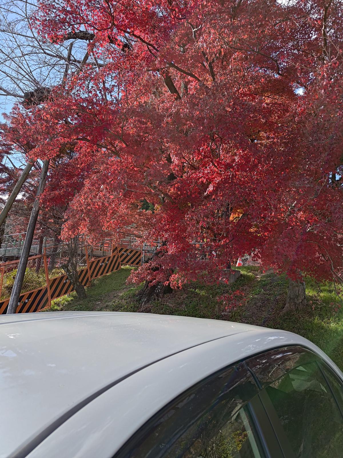 紅葉とマッチするようなオブジェはないですが,青空と紅葉が映えます.
