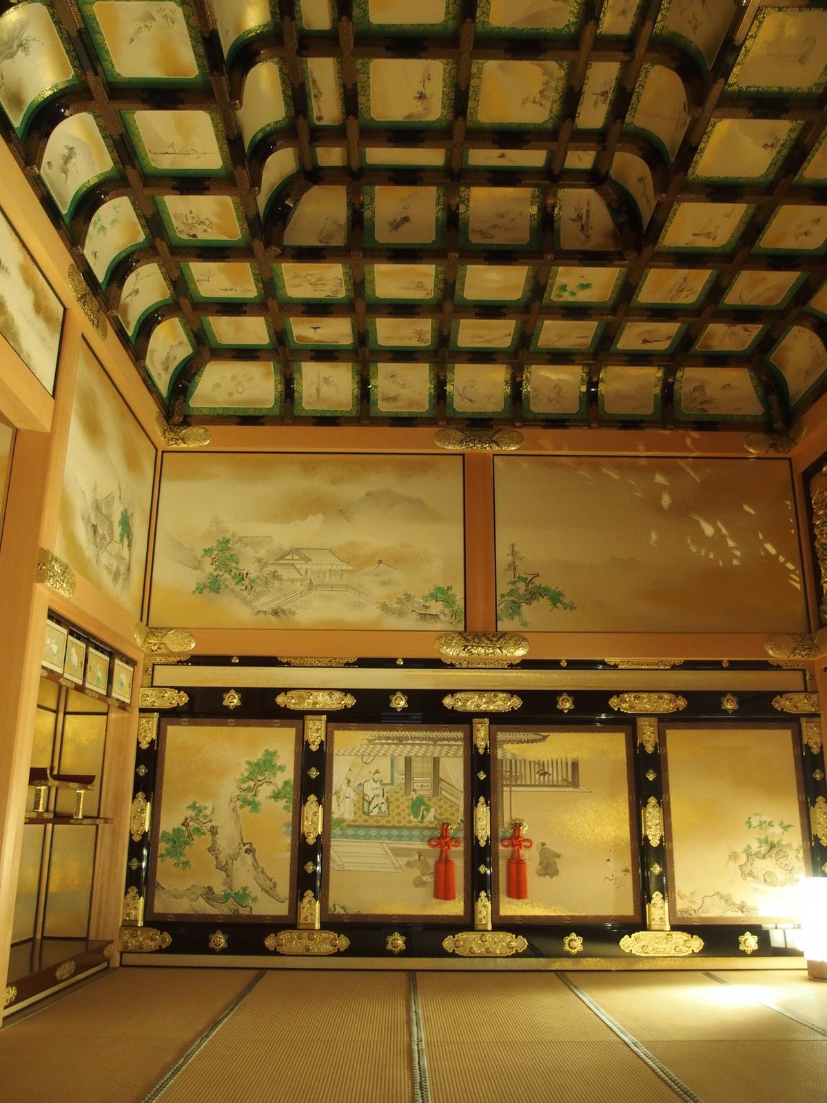 名古屋城 本丸御殿 2023/12/23(2年前) 愛知, 旅, 東海 デジタルスタンプのある名古屋城へ来ました. 天守は改装中で入れませんが本丸御殿はすぐに入れました. 初めて入りましたが金ぴかでびっくりしました. 天井画もあり豪華です. 欄間も豪華です. なおこちらの天井画はこれから描くとのこと.