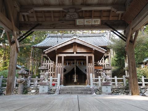 舞殿から覗く本殿.