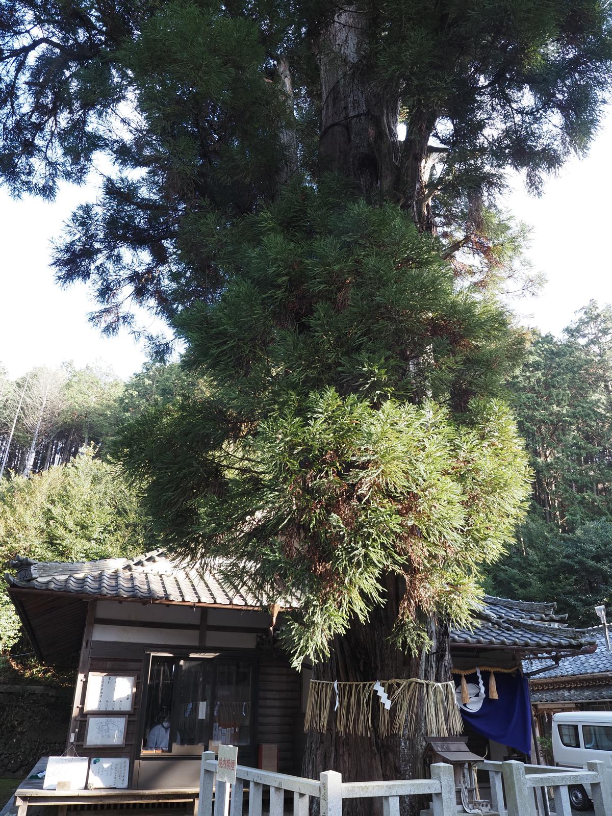 樹齢千年と言われる社務所前の巨木.