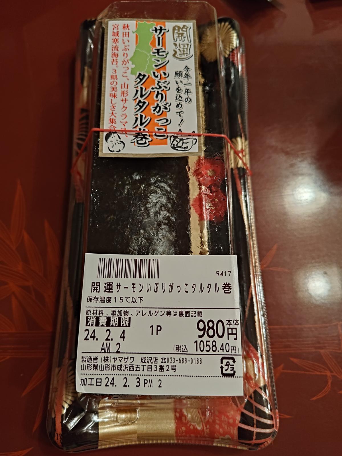 この恵方巻,いぶりがっこが入っていました.この辺りじゃないとまず見あがらない恵方巻だと思います.