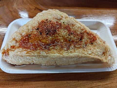 三角定義あぶらあげ 2024/2/5(2年前) 宮城, 旅, 東北, 食べ物 銀山温泉をチェックアウトしてこの日は帰りますが,その前にとても美味しい油揚げが仙台の山奥にあると聞いていたのでそれを食べに行きました. その場所は定義如来西方寺のある場所です. 世親菩薩か無著菩薩のどちらか. 御廟「貞能堂」. 大本堂. 五重塔. 広かった西方寺を巡った後に油揚げがある定規とうふ店へ. こちらがその油揚げ. 揚げたては外はさくさくで香ばしく,中の豆腐も適度な固さで,食べ出がありおいしかったです. 店内. サインがいっぱい.