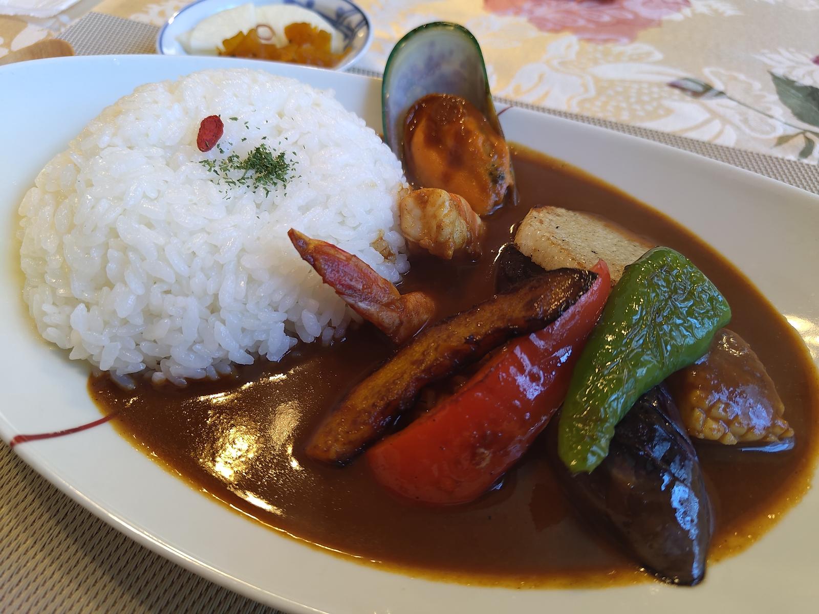 昼食はカレーで店を探し,上高地線の終着駅である新島々駅のそばにあるカフェプレイエルに入りました.