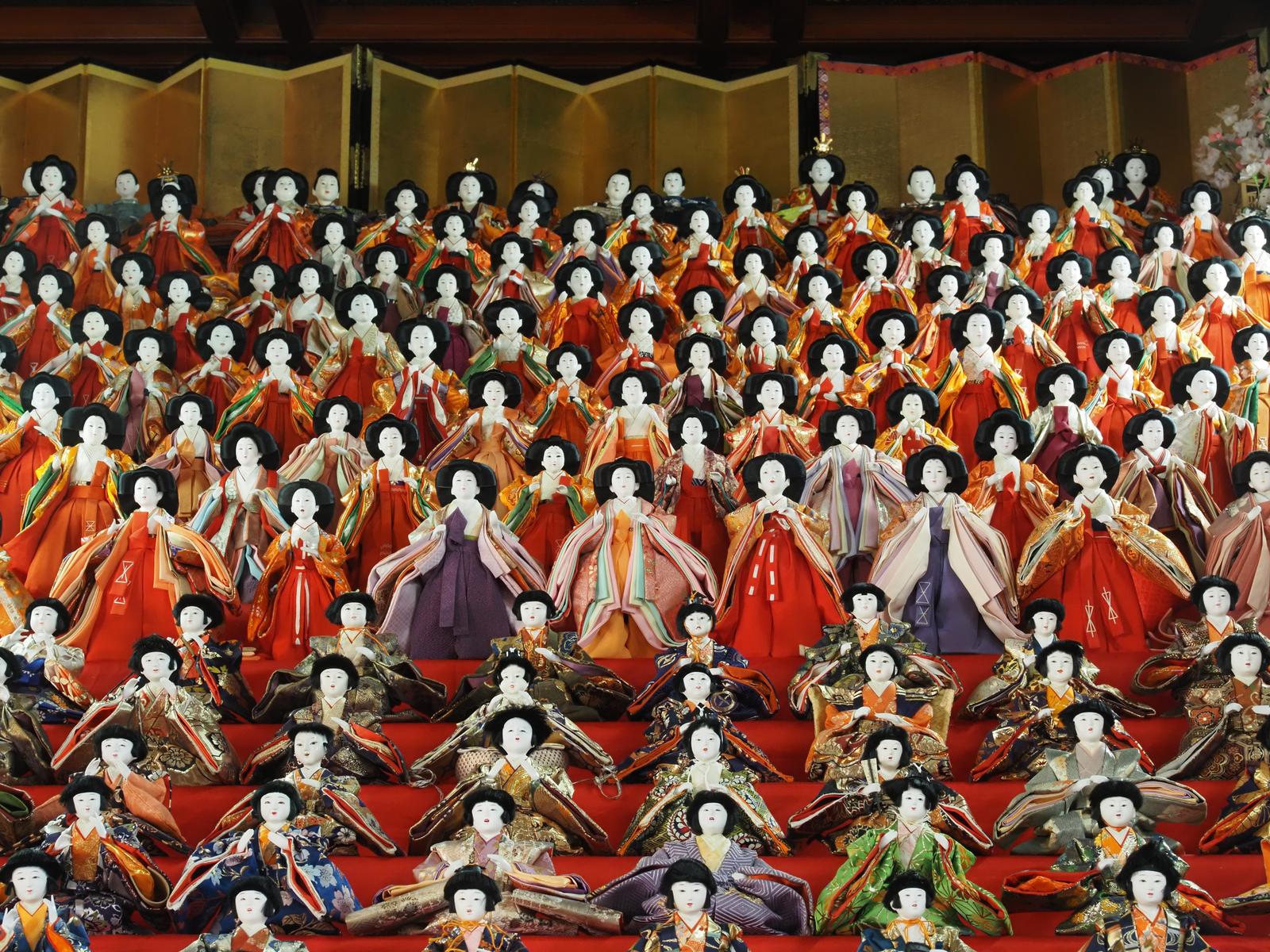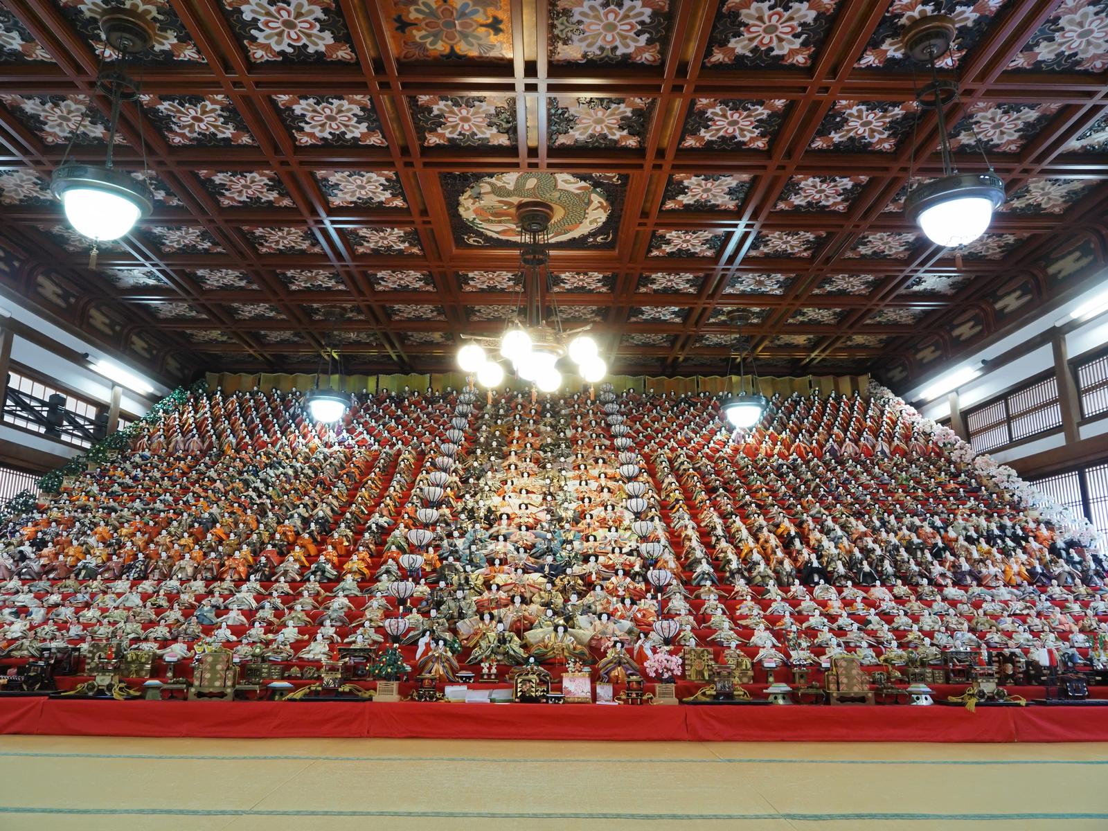 可睡斎ひなまつり – 瑞雲閣2階 2024/3/9(2年前) 写真, 東海, 静岡 瑞雲閣の広間には1200体のおひな様. 人がいないのでこれだけ下がっても人を写さずに撮れました. 欄間が邪魔なので近づくと微妙に入りきらないです. 壮観です. 男雛女雛男雛女雛男雛女雛・・・ 三人官女がずらり. 左大臣コーナー. 表情豊かな三人上戸. 一番下にはオリジナルのお菓子も. ひな壇と反対には桃の書字. 今年はこちらにもいろいろなひな人形・雛飾りがありました. 廊下にあった人形.