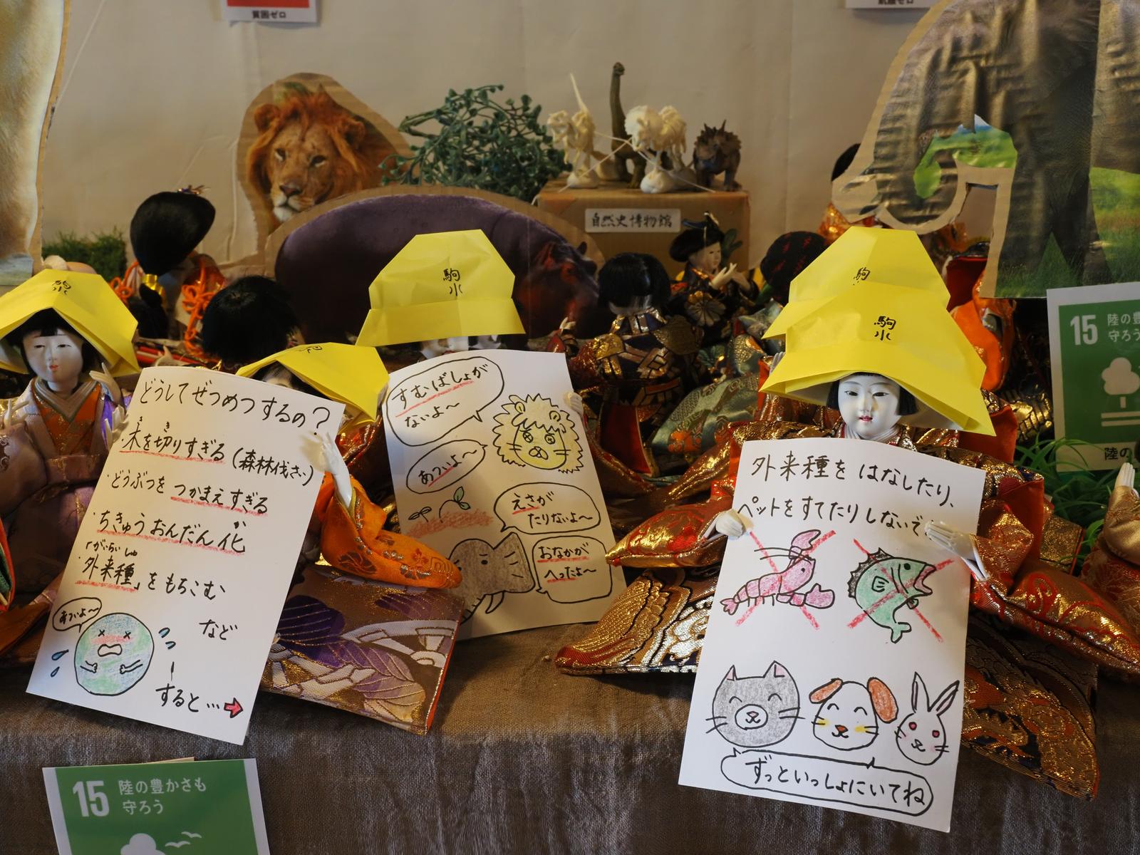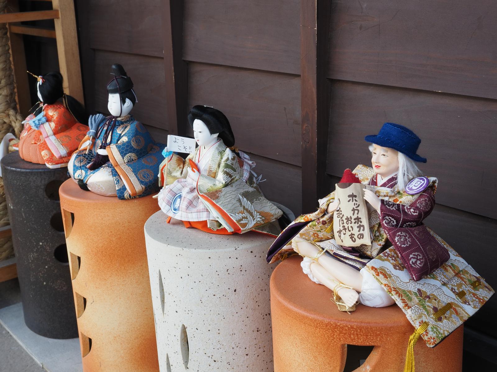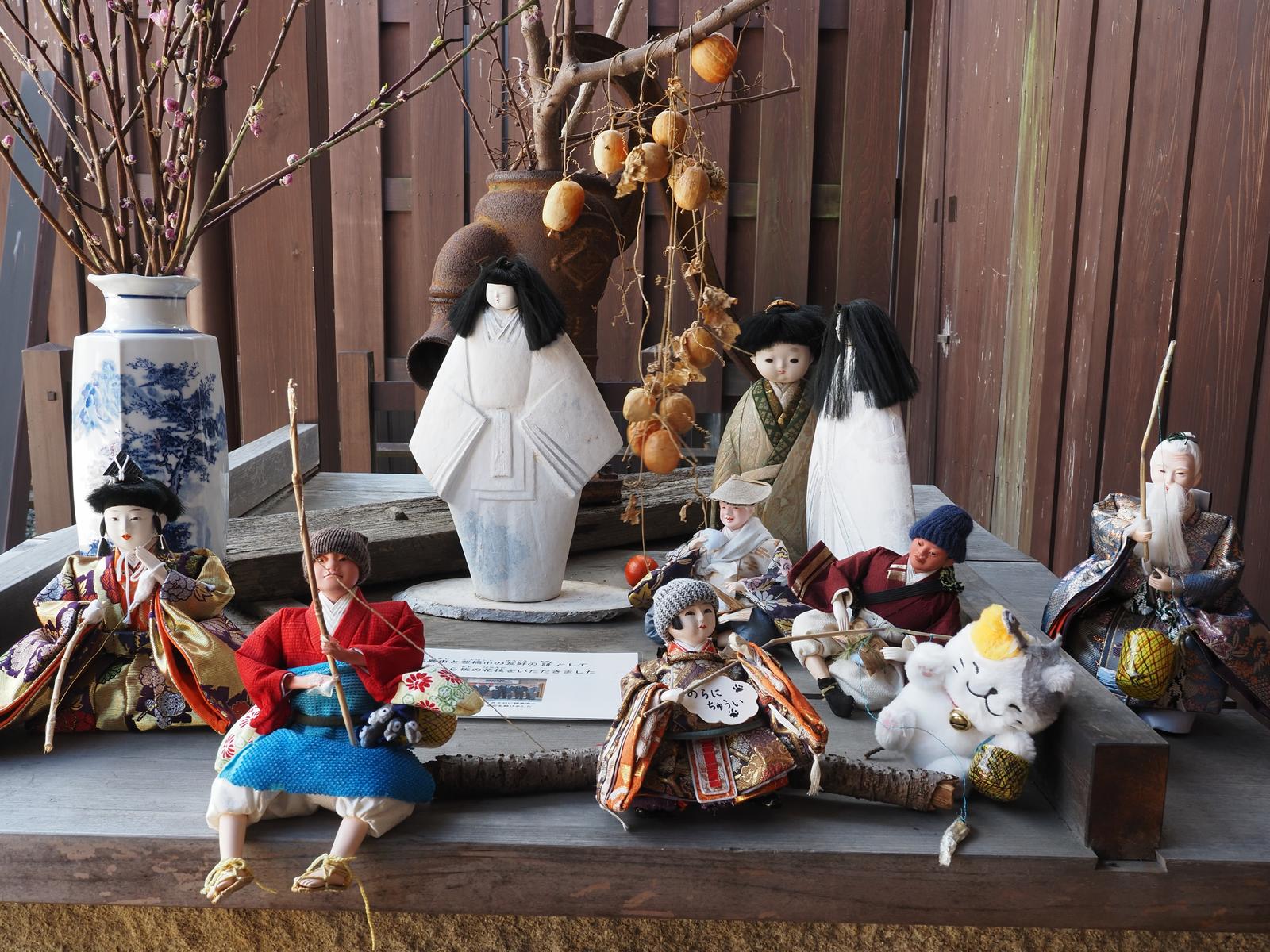 敷地のあちこちに福よせ雛.それぞれ異なり見て面白いです.