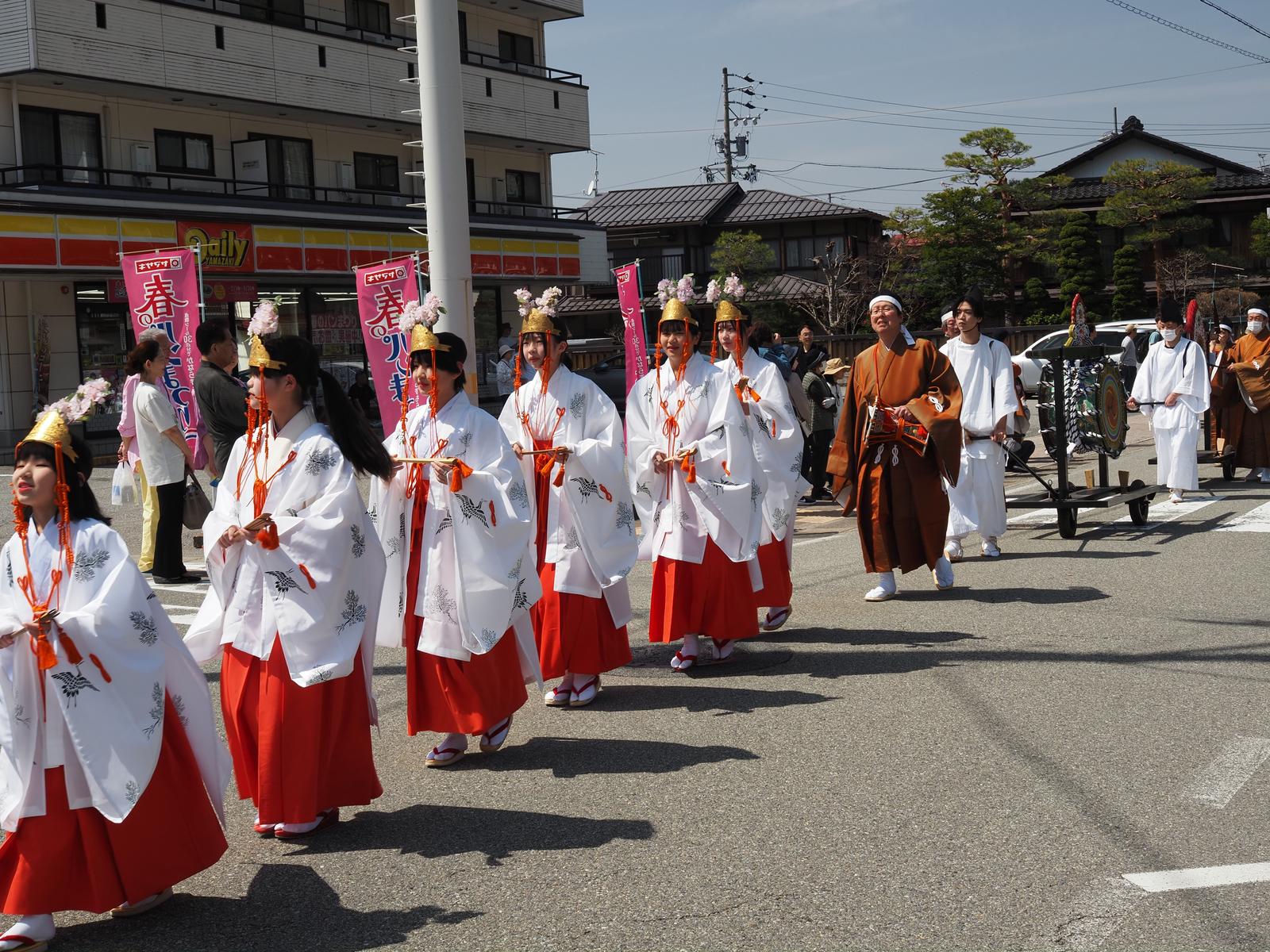 春の高山祭 – 御巡幸 2024/4/14(2年前) 写真, 岐阜, 旅, 東海 春の高山祭を行っている日枝神社へ行きました(ちなみに秋の高山祭は櫻山八幡宮が行います). 行く道すがらに御巡幸の衣装や道具をよく見かけました. とりあえず拝殿まで行きました. 御巡幸がこの神社か始まることはわかっていたのですがどこからどう始まるかはわからず,とりあえず鳥居で待っていたらここが開始の場所だったようで人が集まってきました. 開始の宣言. 獅子舞. 笛. 太鼓. 飛騨染の祭衣装. 大名行列. 神輿. 神社の行列は一通り終わったので場所を移しました. 神社の下にあった台車も御巡幸に加わっています. 巫女さん. 高貴な人. 動画. http://albatross.kilo.jp/pictures/2024/gifu/tym_gyouretsu.mp4 御巡幸は3時間ほどかけて御旅所へ向かうようです. そのため開始時はトイレに行きたくなった時のことなど話してました.大変です.