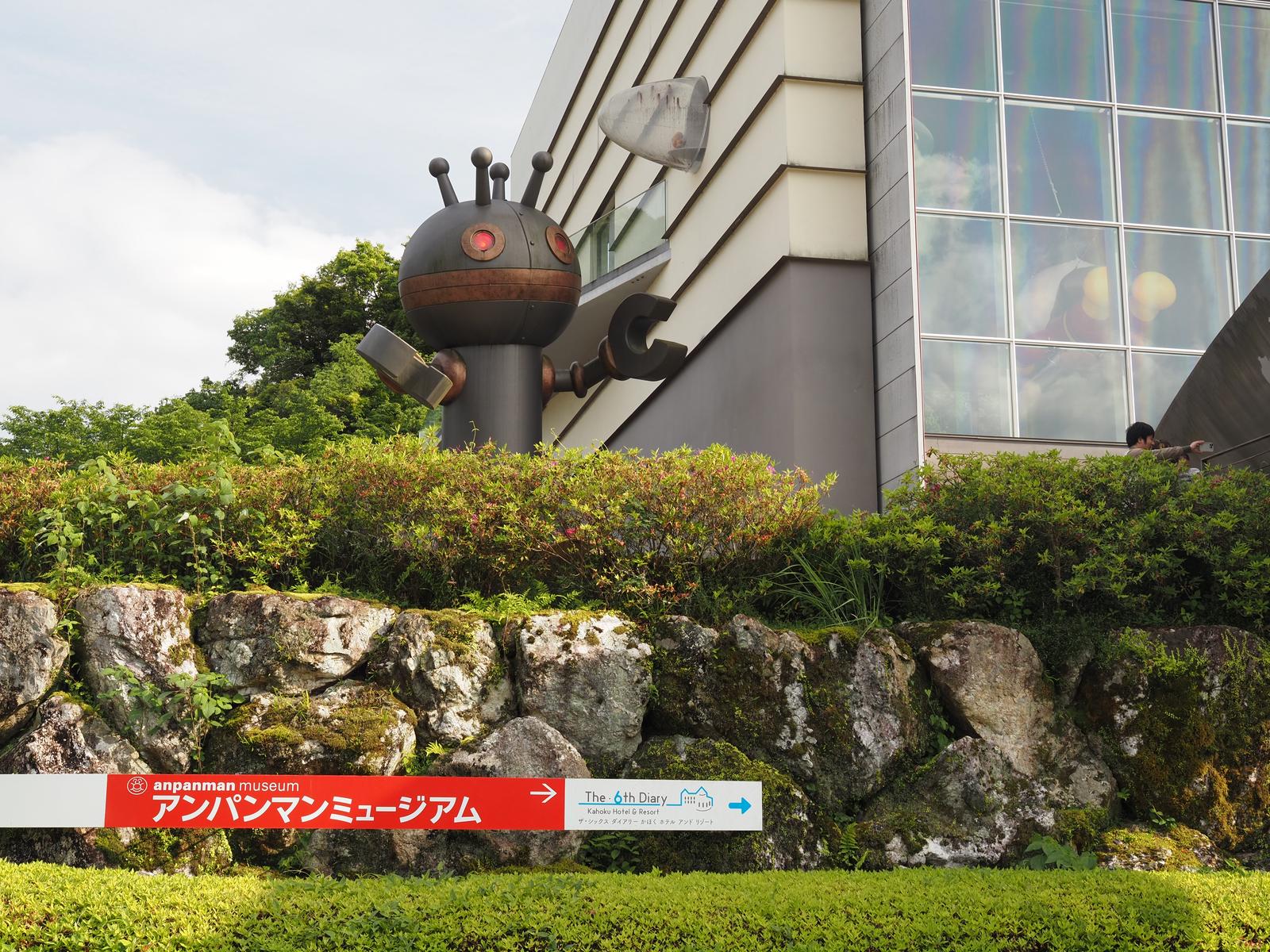 やなせたかし記念館アンパンマンミュージアム 2024/5/2(2年前) 写真, 四国, 旅, 高知 高知市から少し東にある香美市にあるやなせたかし記念館アンパンマンミュージアムへ行きました. 建物の隣にばいきんまんの巨大ロボがいました. 正面にアンパンマンの像. 橋を渡って建物に入ります. エントランスの吹き抜けに大きなアンパンマン. ギャラリー. 名誉館長室. 外に出てやなせたかし記念公園.