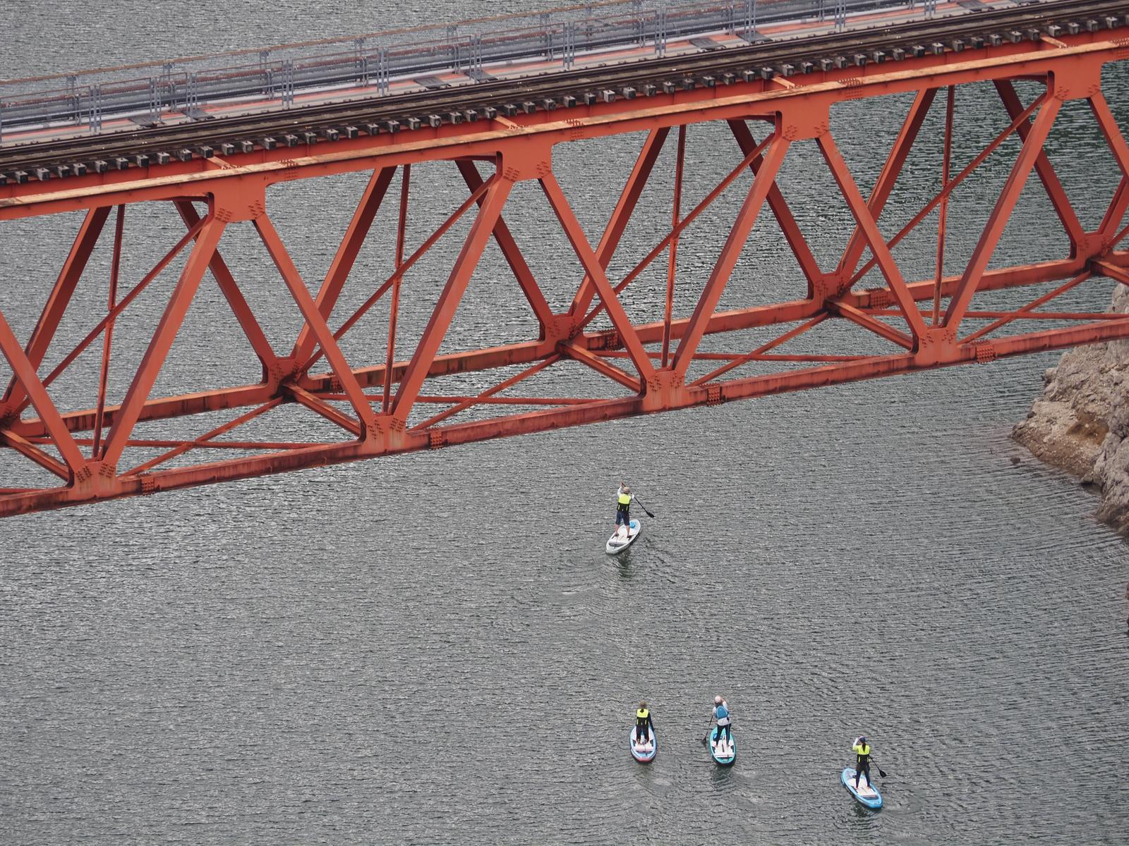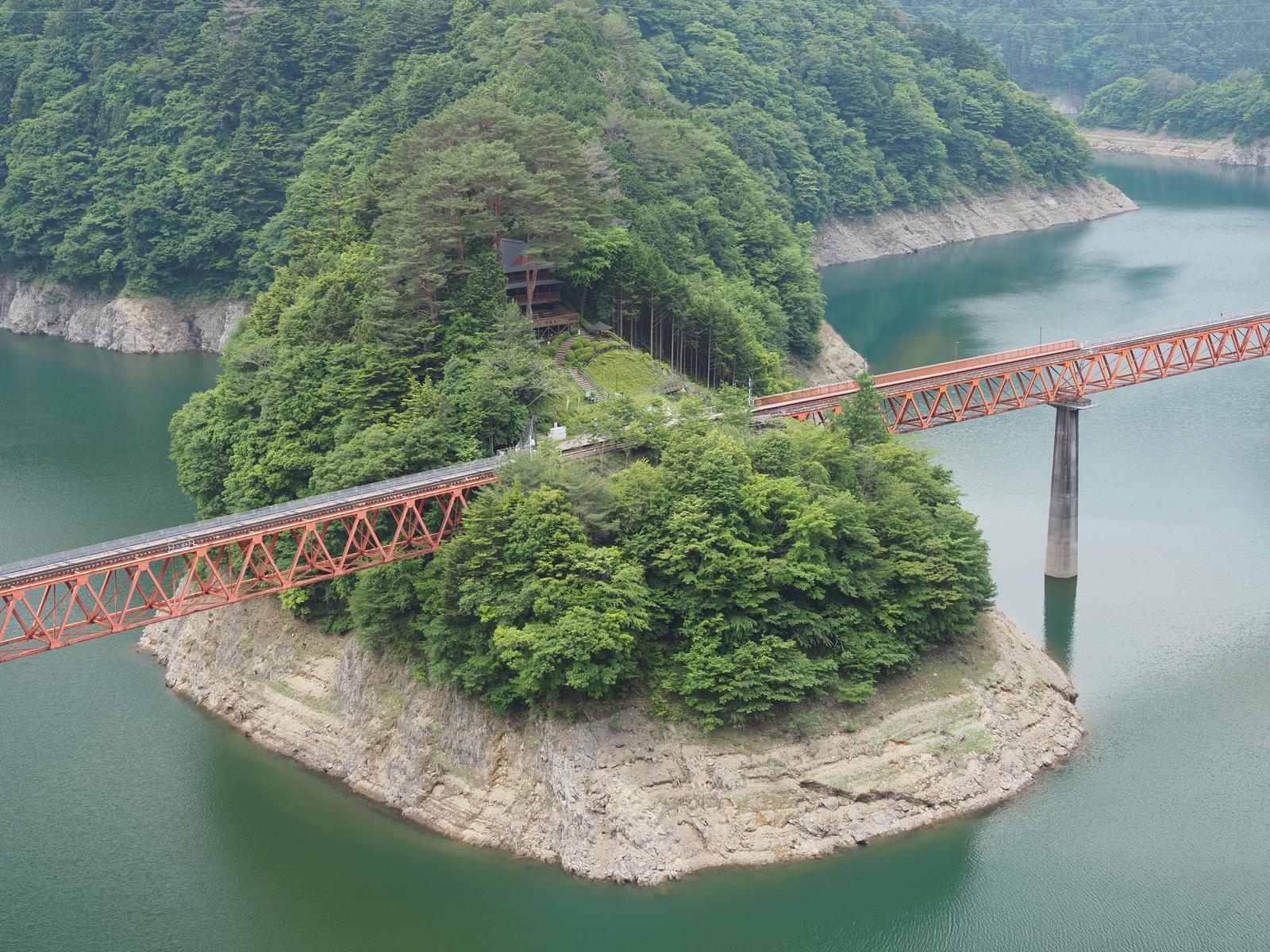 奥大井湖上駅 2024/5/25(2年前) 写真, 東海, 静岡 静岡SAから北西に移動して奥大井湖上駅を見に行きました. 前回来たときは夕方で駅が陰になっていたので朝に来れば日が当たることを期待しましたが天気に恵まれませんでした. 時刻表を見たら最初の電車が来るのは1時間以上も後のようでした. そのせいか人はまだいないようです. カヌーをやっている人はいました.