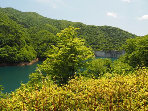奥四万湖の周囲にいくつか展望ポイントがあるので行ってみましたが,どこも木で視界が遮られてイマイチでした.