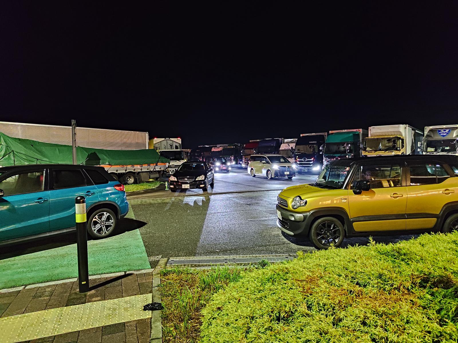 盆の連休初日でありかつ地震で一部の高速道路が通行止めになったせいか,駐車場では車がひしめいていました.