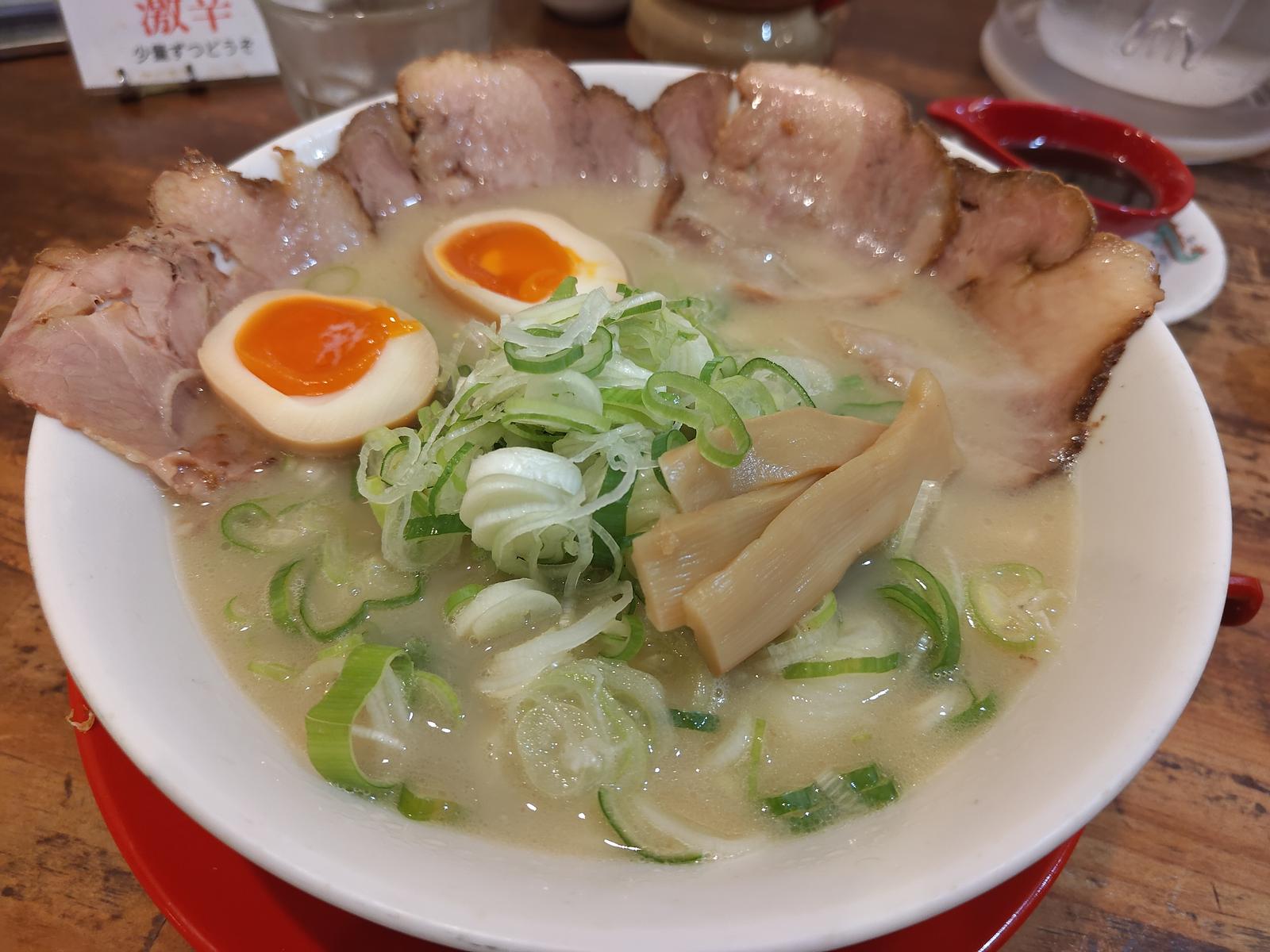 中華そば@髙安 2024/8/16(2年前) 京都, 近畿, 食べ物 五山送り火を見た後はようやく食事となりました. 京都の有名ラーメン店,髙安へ行きました. 店内には食べログのラーメン百名店の楯が並んでいました. 中華そばに煮卵と特大ねぎをトッピングして注文. 鶏がら・豚骨ベースのスープはまるでシチューのようなクリーミーさでした. 唐揚げも注文.ご飯で食べたくなるような食べごたえのある唐揚げでした.