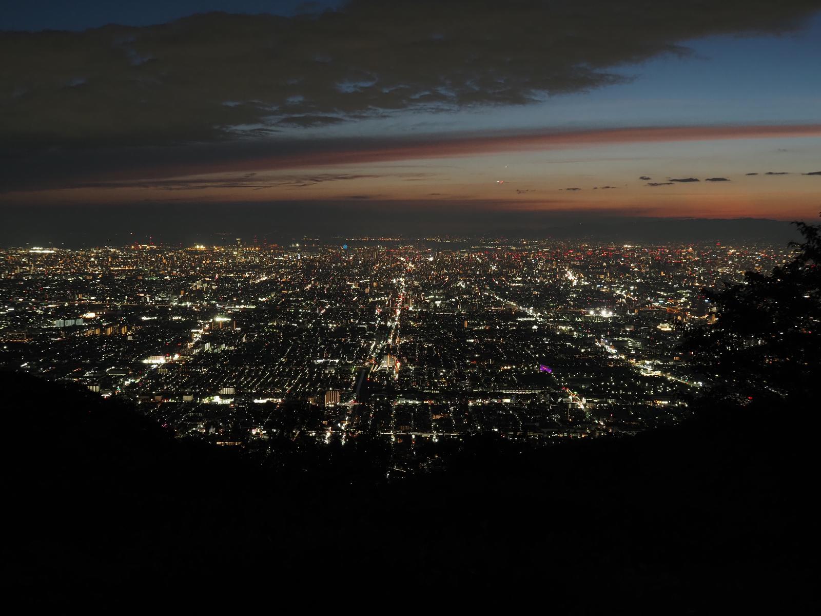 信貴生駒スカイラインにはいくつか降りてすぐの展望台がありそこでも夜景は見れますが,ぼくらの広場はすぐ下が斜面で景色を遮る樹はほとんどないため,手が届きそうな夜景を見ることができ他の展望台とは一線を画しています.