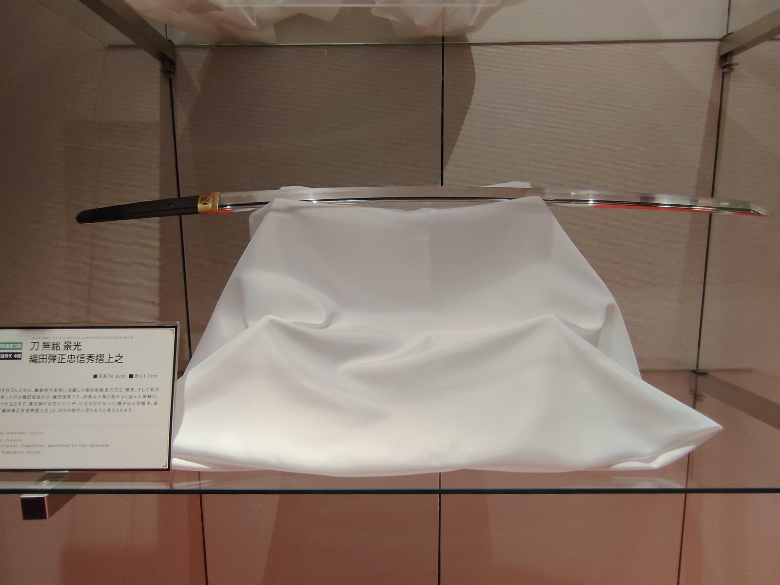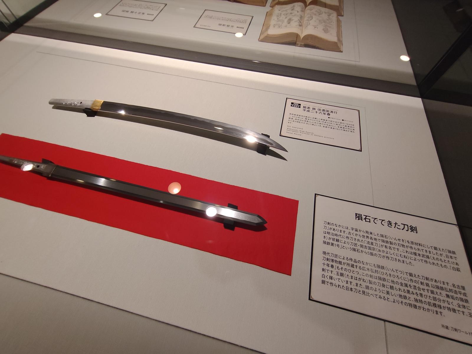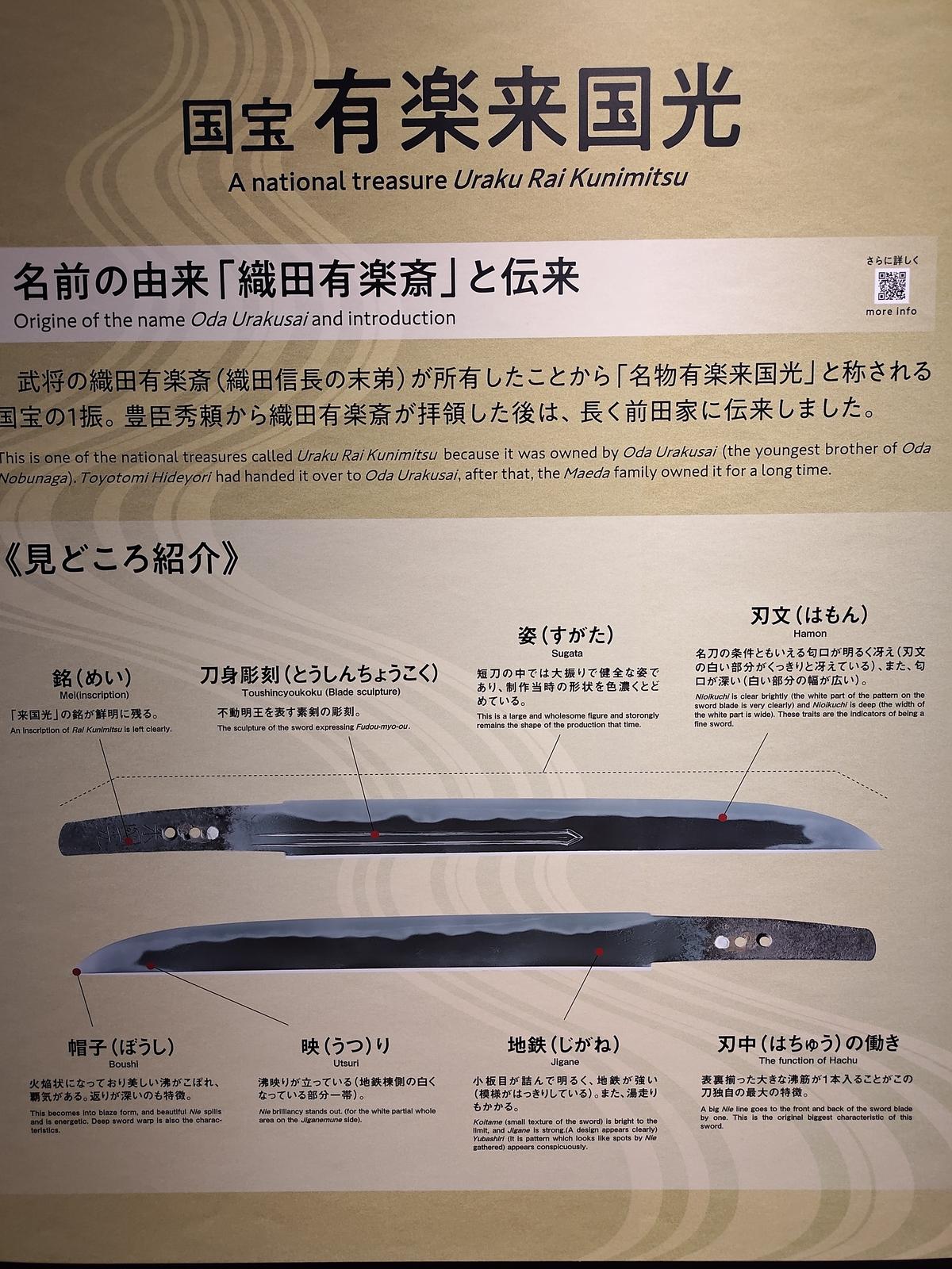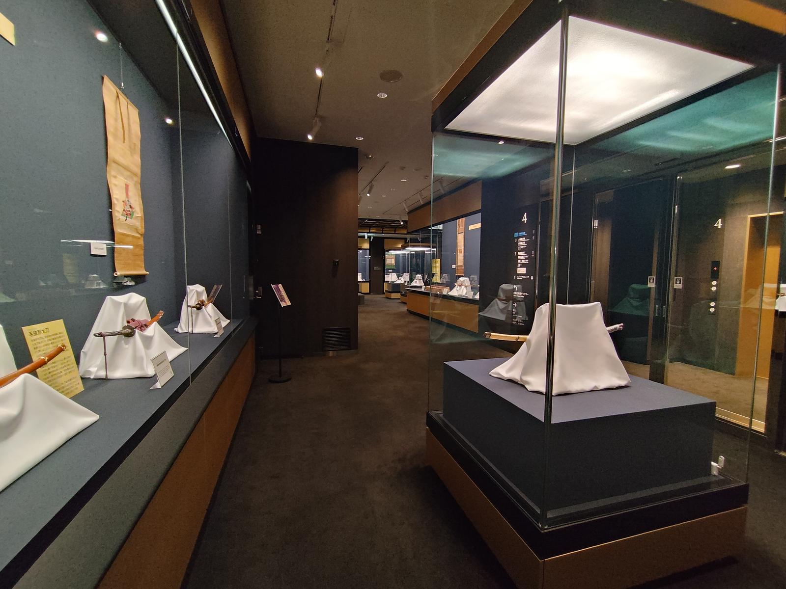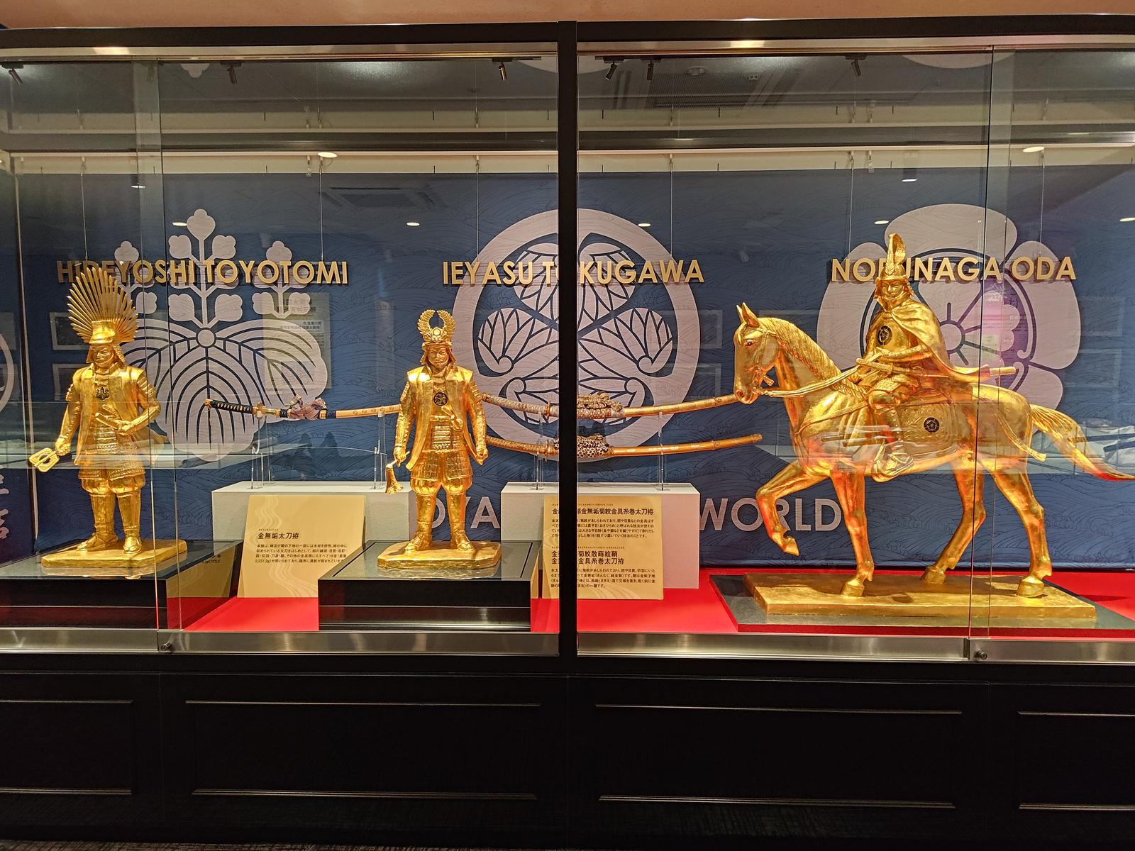 名古屋刀剣ワールド/名古屋刀剣博物館 3F~ 2024/10/26(1年前) 愛知, 旅, 東海 3階に行くとそこにも刀. 菊一文字の刀. 徳川家に祟るということで有名な村正. ふと天井を見ると天井画が. 隣は弓矢・鉄砲ゾーン. 武将ゾーン. ここにも刀がいっぱい. 孫六ってどこかで聞いた名前だと思いましたが,関の刃物ですね. ちびっこ武将. 隕石でできたという刃物. 三英傑の黄金像. 4階には特別展示室. 黒を基調としたより格式高い感じです. 三つ葉葵があしらわれた鞘の刀. とても貴重な感じで展示されていた,鎌倉時代に来国光が作刀し織田有楽斎が所有した国宝 有楽来国光を昭和時代の刀工が写した作品. 一通り見たのでエレベーターで1階に下ります. エレベーターの壁にも武将の絵が. 1階土産売り場には名刀の名の入ったキーホルダー. 半分以上わかりません.