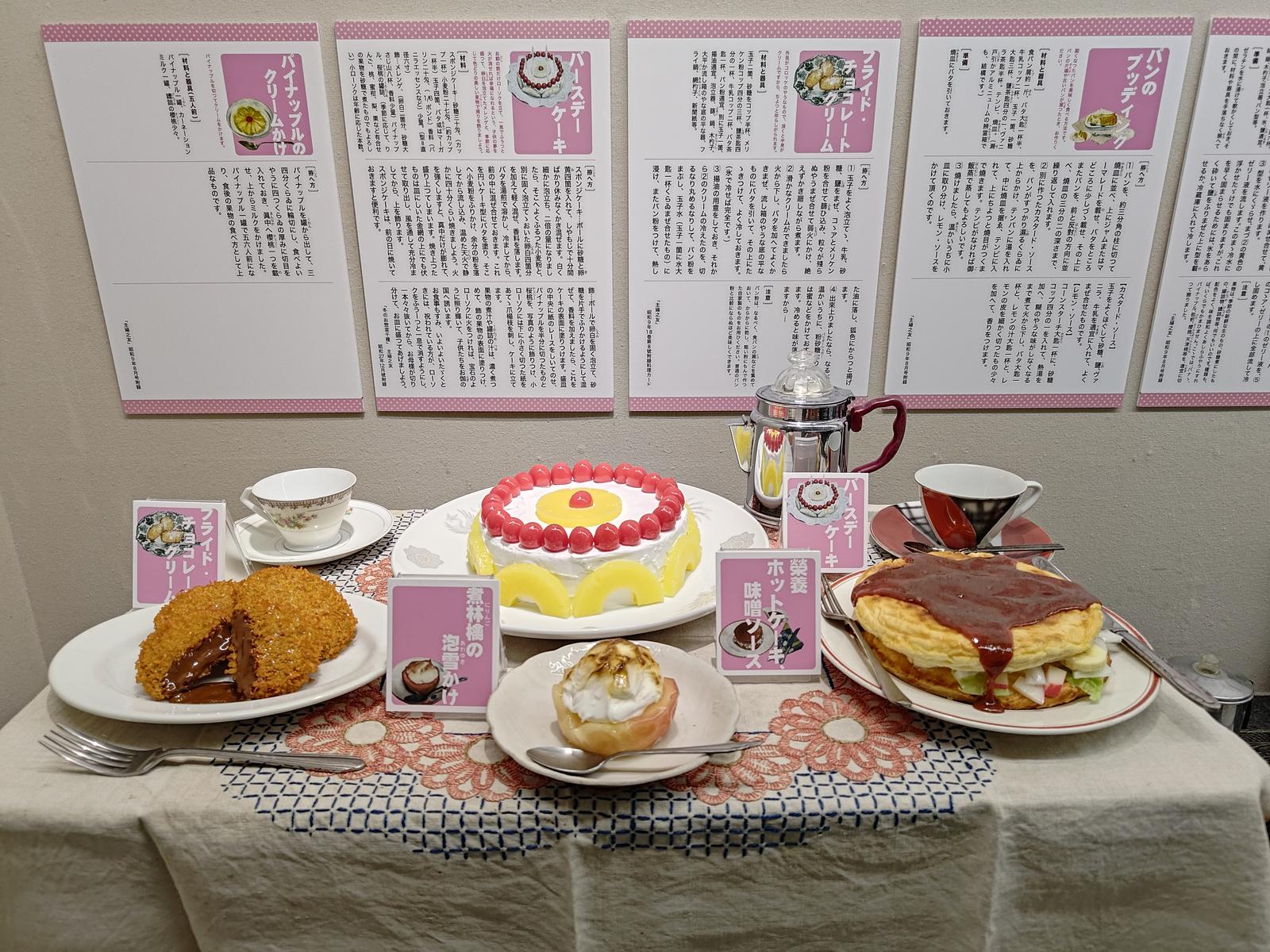 一見ちょっとレトロな食事ですが,よく見るとフライドチョコレートやホットケーキ味噌ソースなどびっくりする名前です.