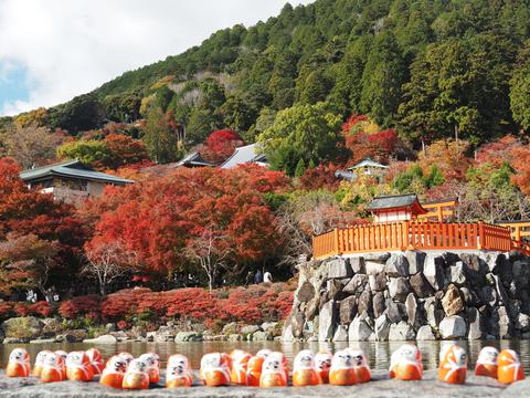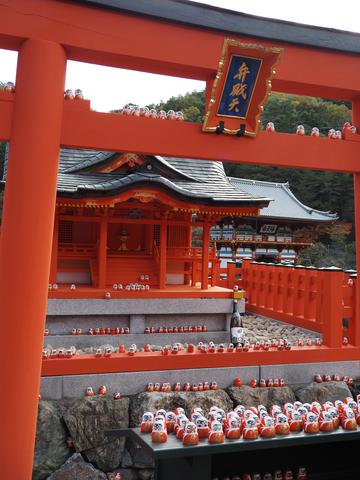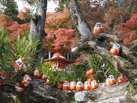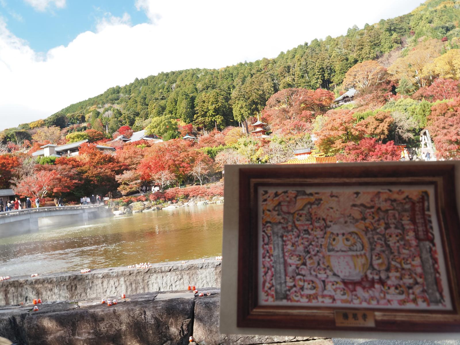 勝尾寺 (3) 2024/11/29(1年前) 大阪, 旅, 近畿 上まで登ったのであとは降りてきます. 途中にダルマによる文字. 木の枝の間から多宝塔. 山門前の池の中にある弁財天社. 山門手前からの眺め. 最後のスタンプを押して絵葉書完成. お土産売り場も個性的でした.