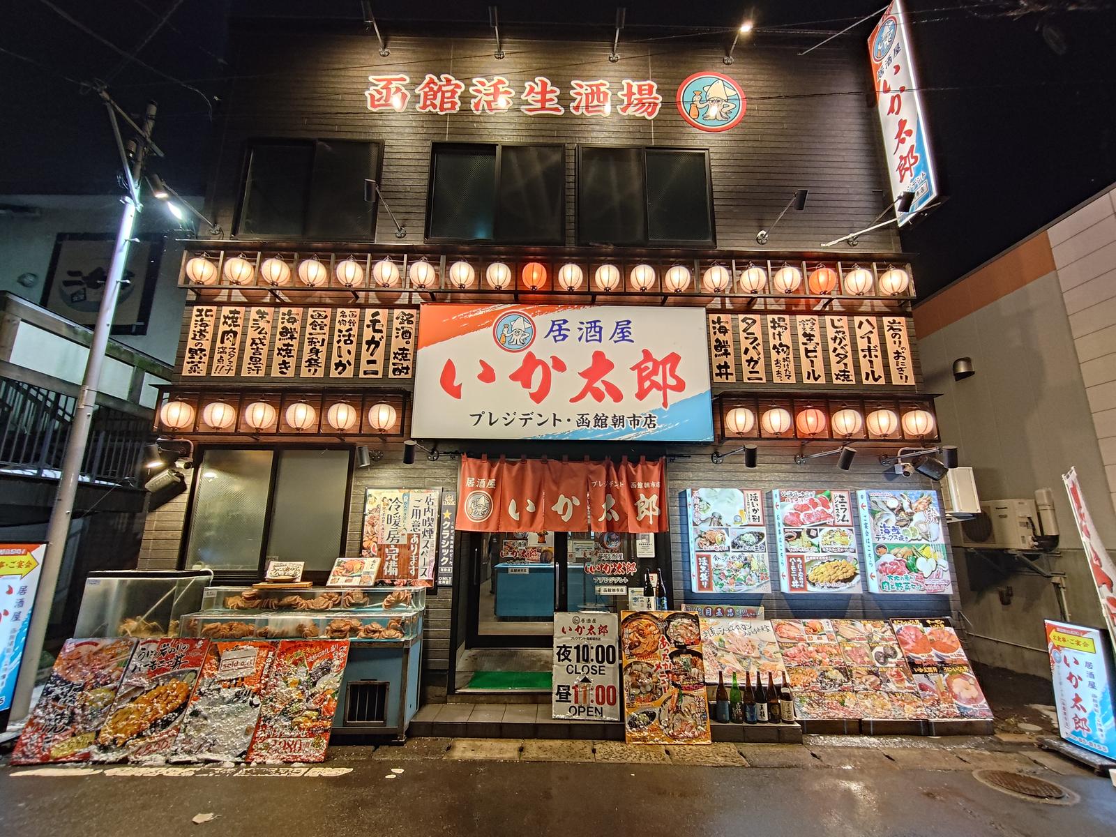いか太郎 朝市プレジデント店 2024/12/26(1年前) 北海道, 旅, 食べ物 この日の夕食は外へ食べに行きました. 道は雪が積もり始めていて,気温が低いのか凍った感じでした. 函館と言えばいかということで,入ったのはいか太郎 朝市プレジデント店. 函館に数店舗ある店です. レトロな感じな店内です. お通しとビール. 残念ながら活いかは売り切れの表示. 北海道と言えばホッケ. 岩のりのおにぎり2個と汁物でフィニッシュ.