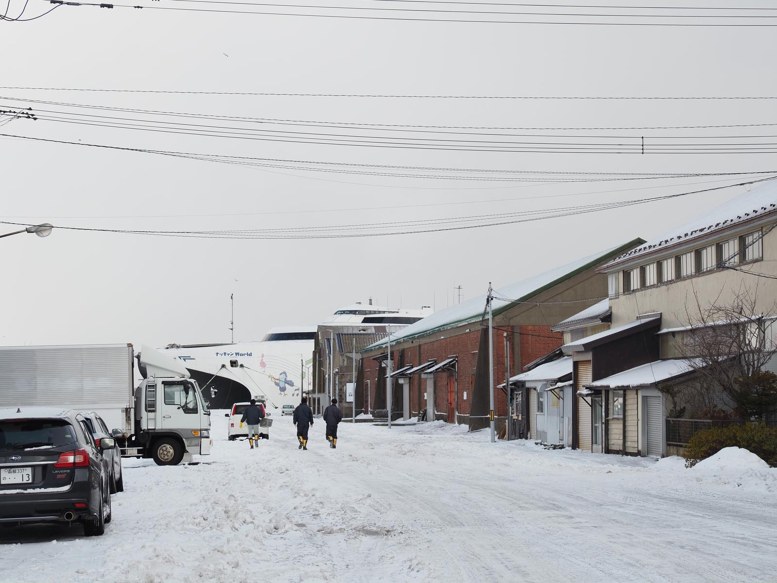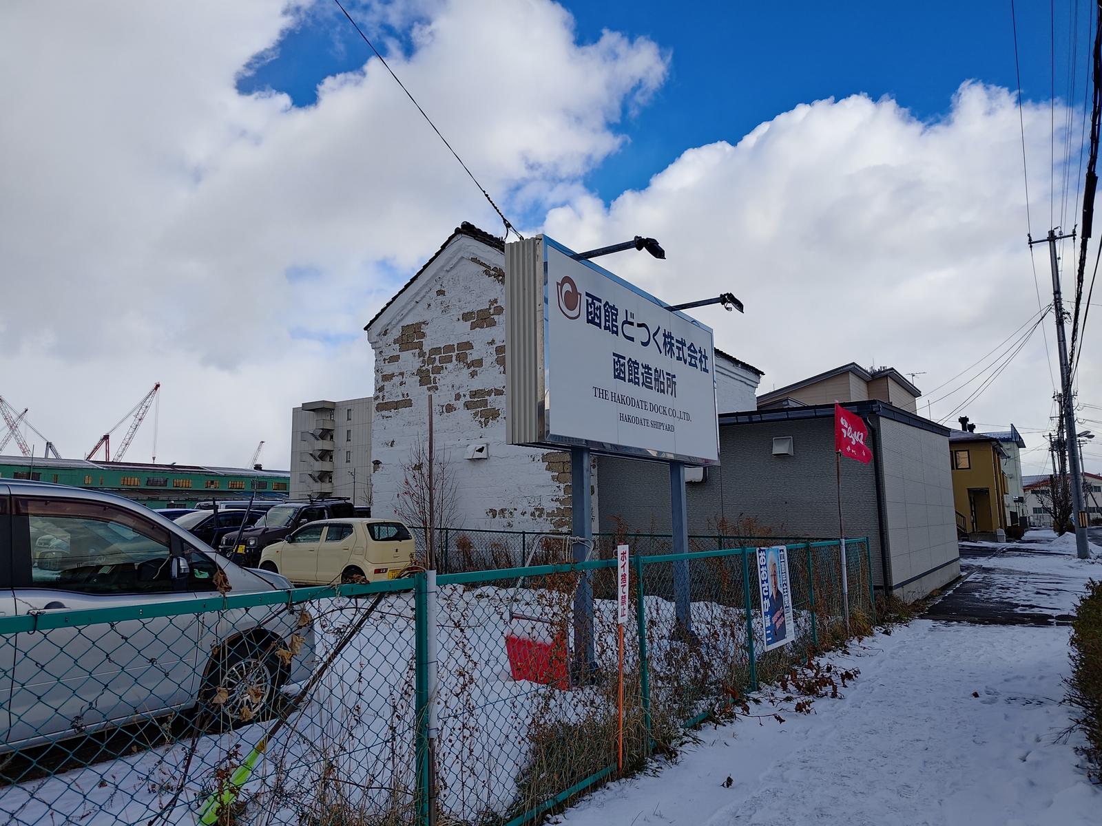 函館どつく前周辺 2024/12/27(1年前) 写真, 北海道, 旅 とりあえず函館市電の終点,函館どつく前まで来てみました. 函館どつくって何だろうと思いつつ歩き始めたらわかりました. 造船会社のようです.ドックから? とりあえず海の方へ. 観光地ではないですが煉瓦の倉庫があり風情ある光景です. なぜか護衛艦もありました. 泊ってたホテルの方. でっかいフェリーがありました. 函館山の方を見ると坂が. 雪国でこんな坂があるとは大変です.