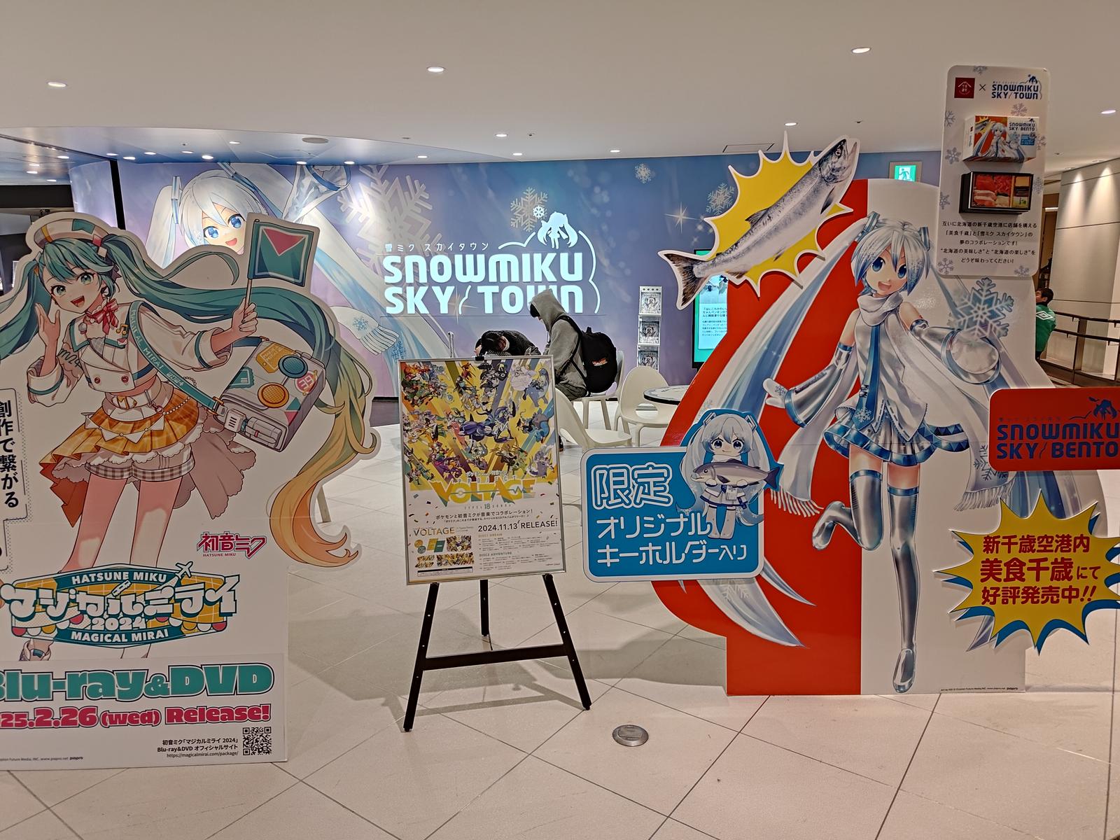 新千歳空港をぶらつく 2024/12/29(1年前) 北海道, 旅 新千歳空港に着きました. フライトまで時間があるのでぶらつきます. レストラン街はおいしそうなものがいっぱい. ラーメン横丁.北海道のラーメンということでおいしそうです. 土産屋も鮮やか. 花で作った飛行機. キャラのコーナー・ショップも充実. ドラえもん ハローキティ. 初音ミク. ロイスのチョコのコーナーも色々ありました.
