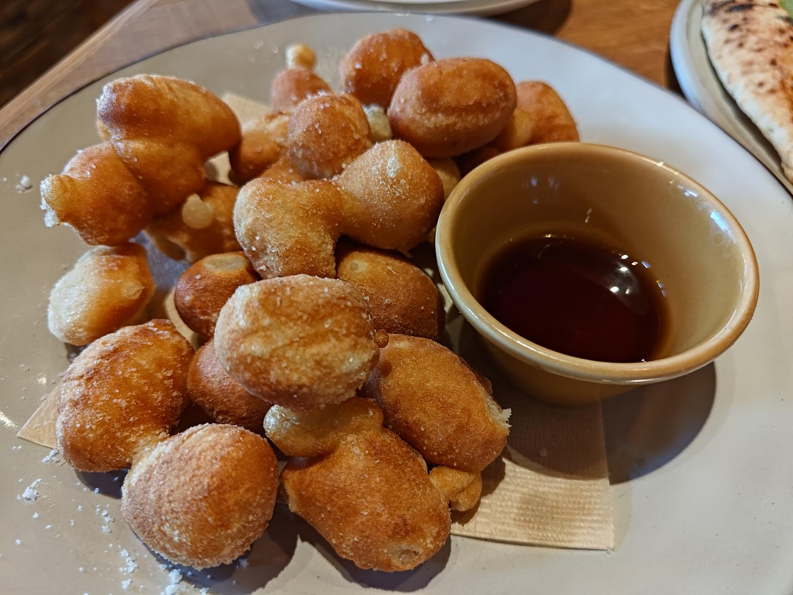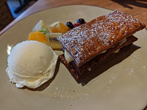 イタリアン@PISOLA 2024/12/31(1年前) 大阪, 近畿, 食べ物 大阪を中心に展開するイタリアン PISOLAに行きました. 大晦日ですが前日にネット予約できました. ナスとベーコン,モッツァレラのトマトソースパスタ. ピザはプロシュートマルゲリータとソーセージ・ルッコラのハーフ&ハーフ. とある動画でニョッキを揚げると爆発するというのを見てたので揚げニョッキを頼んでみました. 温製料理のメニューに書いてありましたがメイプルソースをつけて食べるので文字から想像した通りデザートでした. あとはミルフィーユ.生地がかなりの固さでサクサクなのはよいですが食べるのが難しいです.
